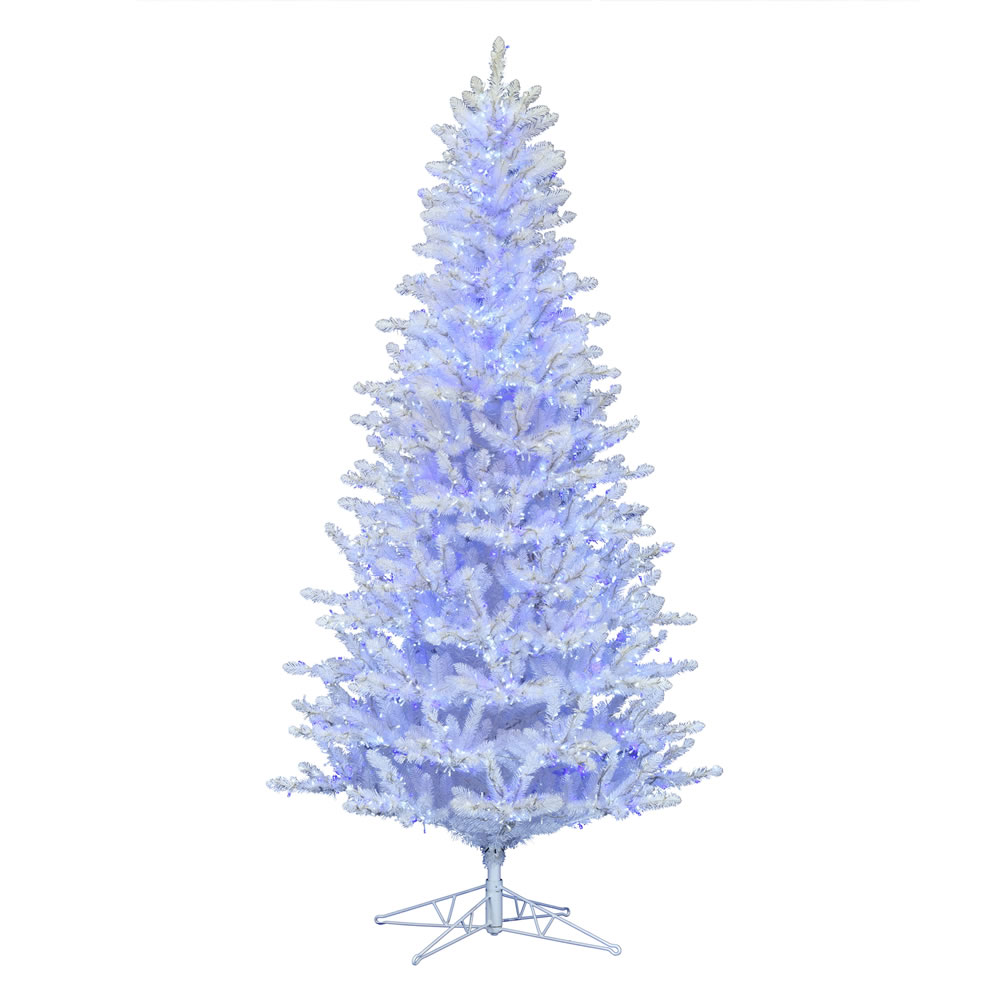Vickerman 14' x 79" Shiny White Spruce Artificial Christmas Tree with 5532 PVC Tips and 7500 Low Voltage LED Pure White 3mm Wide Angle Lights. A wonderful alternative to the traditional green Christmas tree this brilliant tree comes prelit with Pure White Low Voltage LED Wide Angle Lights features beautiful PVC tips on metal hinged branches an On/Off Step Switch and a metal tree stand is included.
