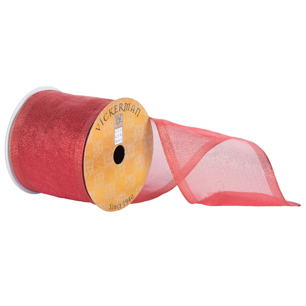 Vickerman 4" x 10 Yards Moss Green Shiny Wired Edge Christmas Ribbon. Add this Beautiful Ribbon to any arrangement holiday tree or as a stylish accent to your gift wrapping projects. This ribbon is made of a sheer nylon fabric and features a wired edge that allows bending and shaping for easy decorating.