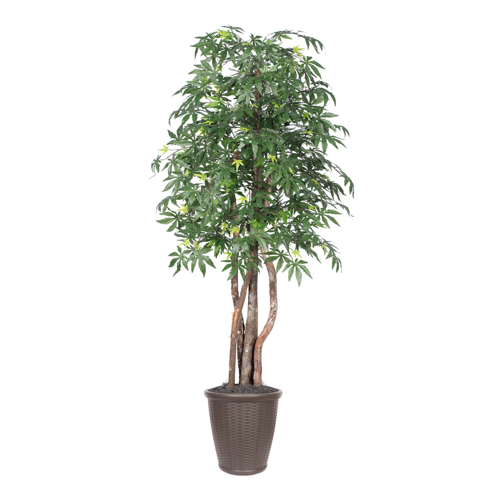 Vickerman 4' Artificial Japanese Maple Extra Full Bush Gray Round Plastic Container.