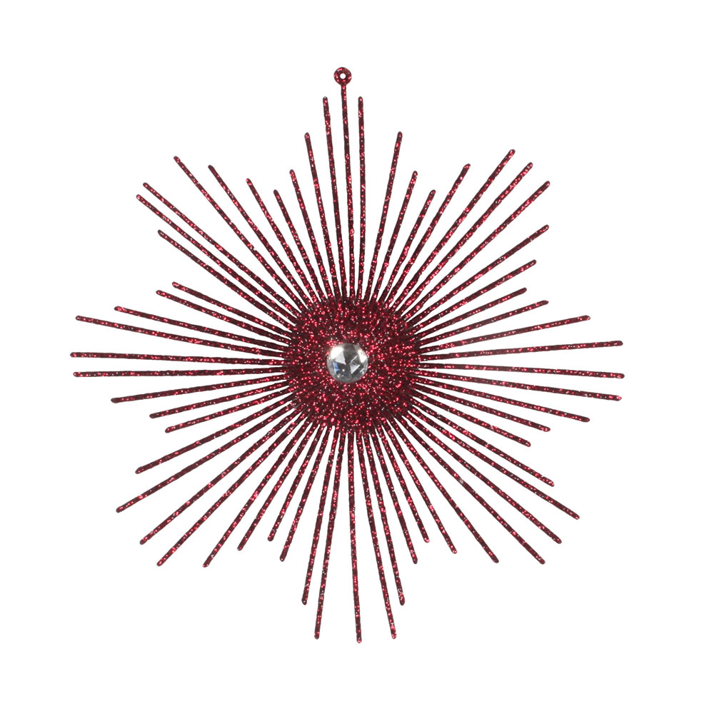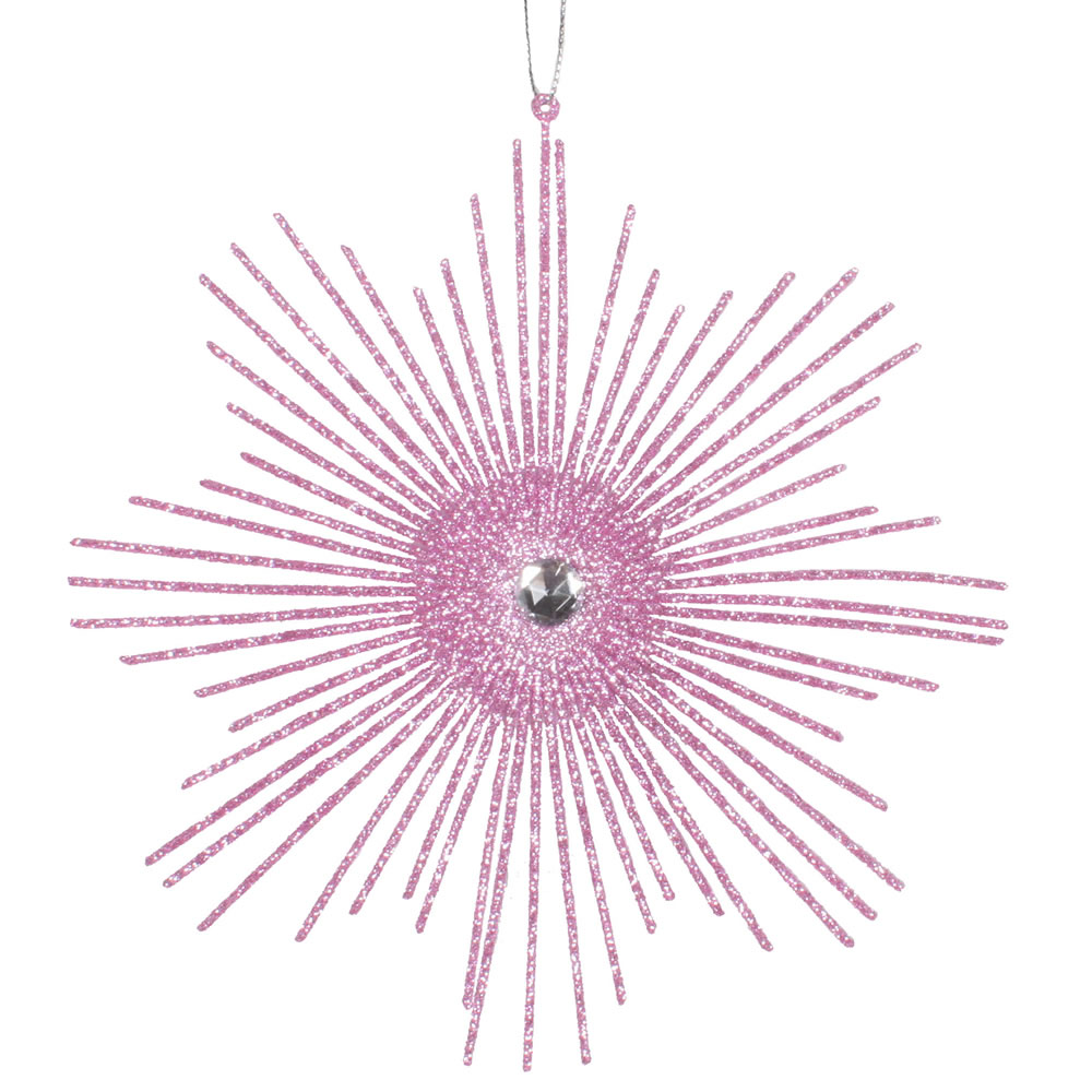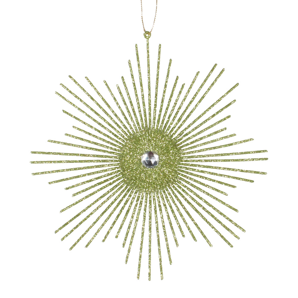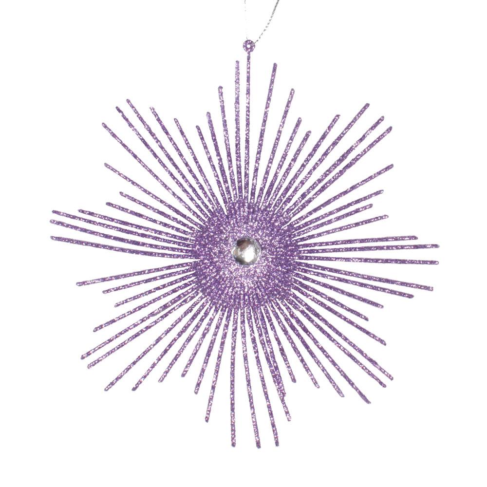Vickerman 6.5" Champagne Snowflake Burst Glitter Christmas Ornament. Complete your holiday ornament collection with this glamorous Snowflake Burst ornament it comes generously embellished with sparkling glitter features a brilliant jewel in the center and is made of shatterproof plastic. Includes 6 pieces per bag.