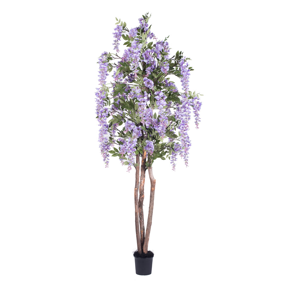 Vickerman 7' Artificial White Wisteria Deluxe Tree Made with Natural Hardwood trunks and Comes in a Decorative Gray Round basket topped with American Made Excelsior. Easy to care for maintenance free an occasional light dusting is all that is needed.