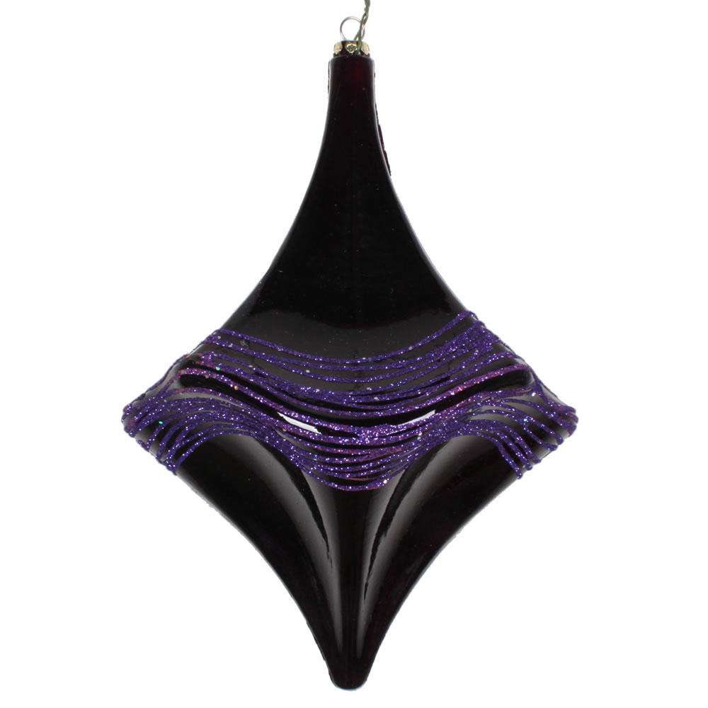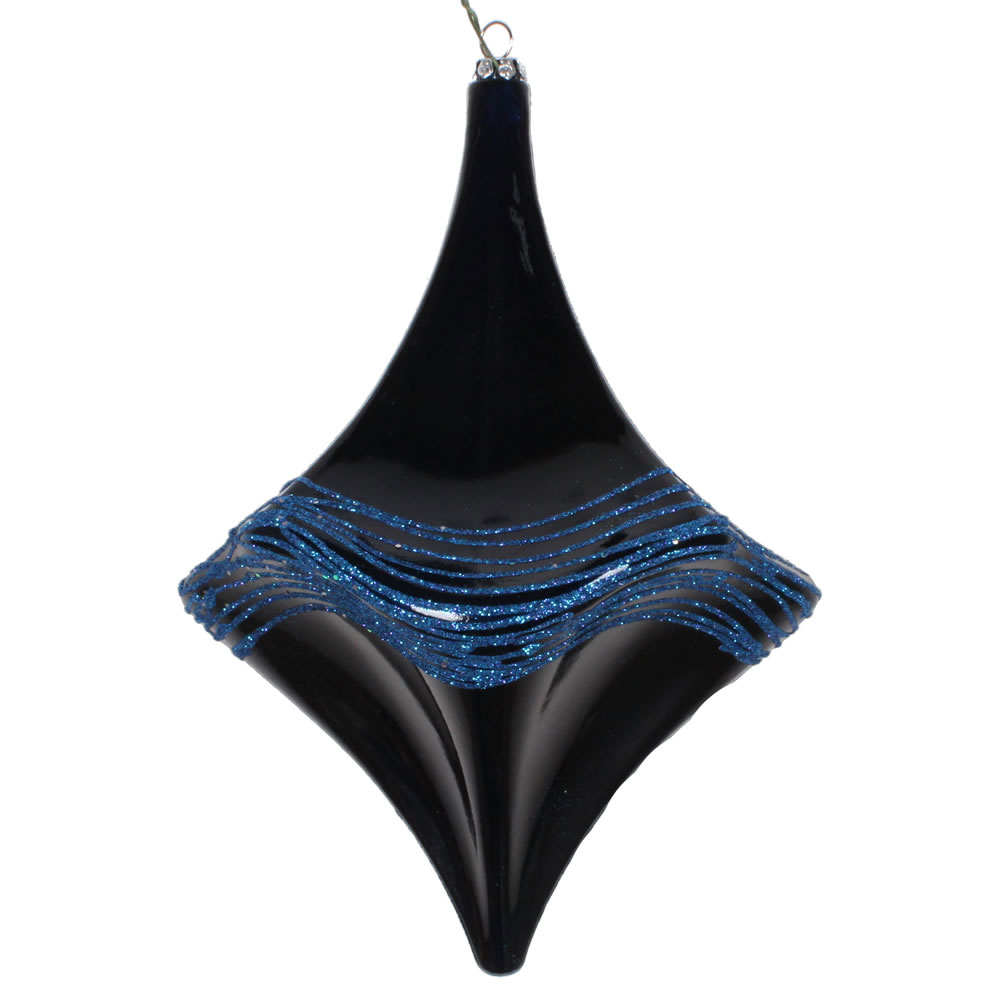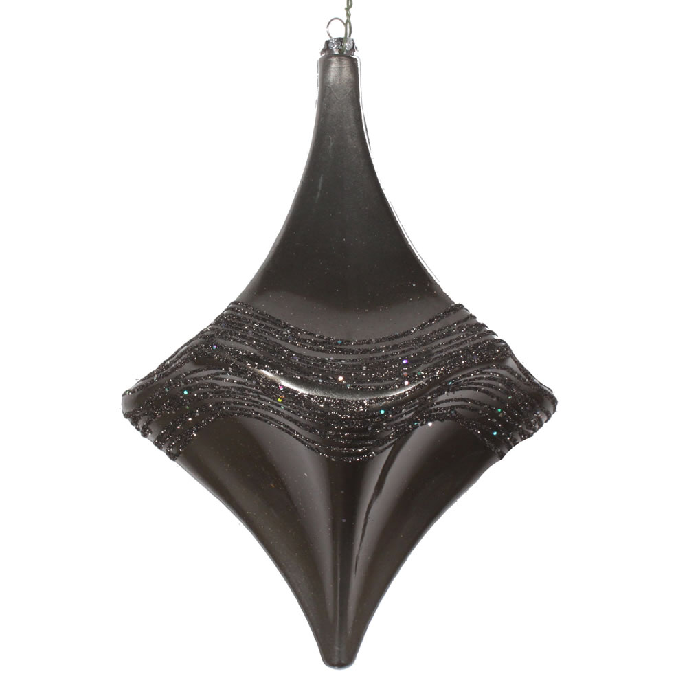 Vickerman 8" Black Candy Glitter Drop Christmas Ornament. Complete your holiday ornament collection with this brilliant drop ornament. This ornament is made of shatterproof plastic features a candy finish with sparkling glitter accents and is the perfect addition to any holiday decorating project. Each ornament has a drilled cap with threaded wire for easy decorating.