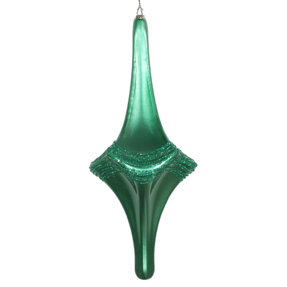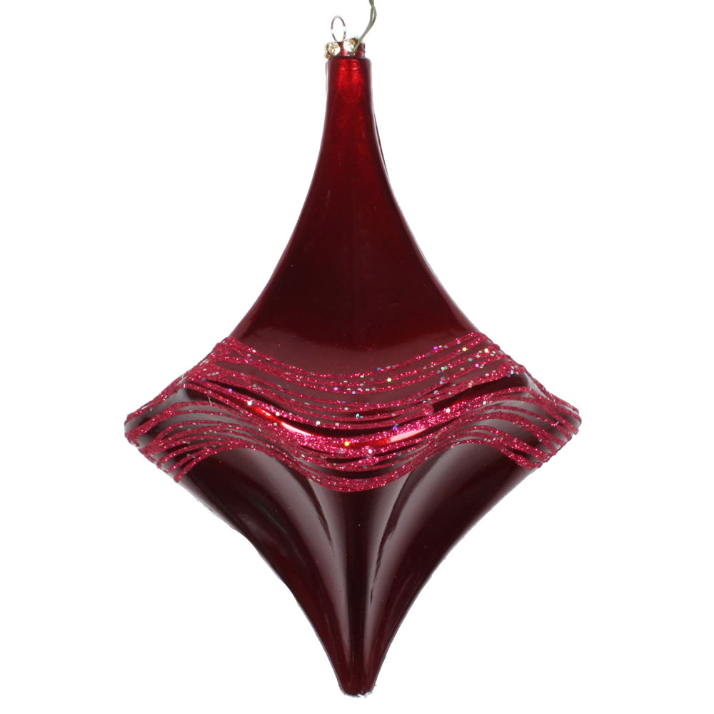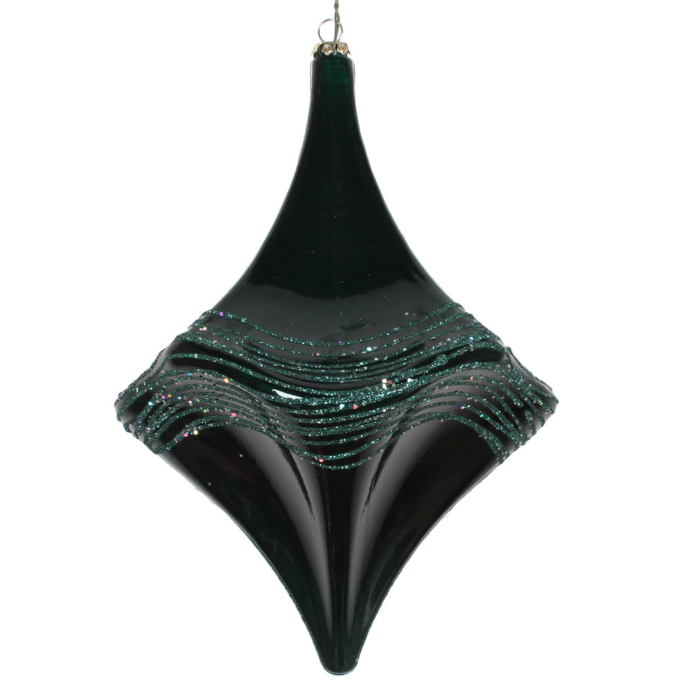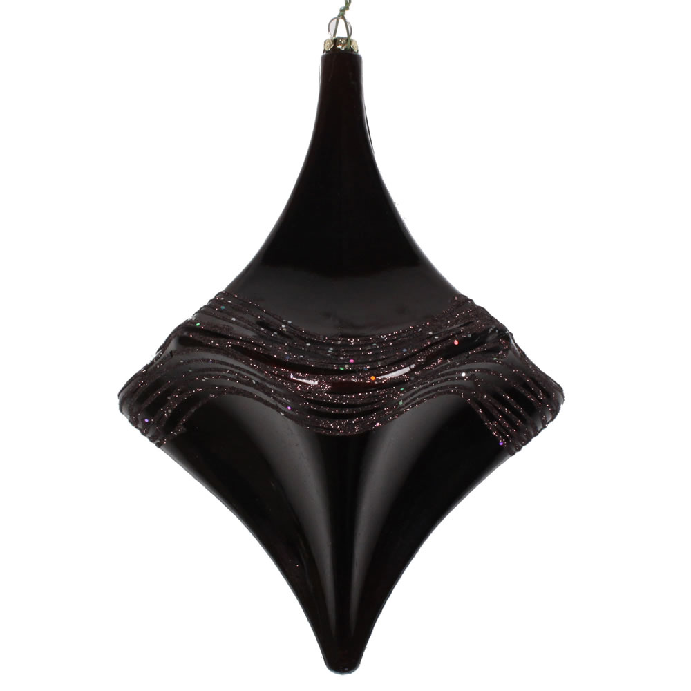 Vickerman 8" Black Candy Glitter Drop Christmas Ornament. Complete your holiday ornament collection with this brilliant drop ornament. This ornament is made of shatterproof plastic features a candy finish with sparkling glitter accents and is the perfect addition to any holiday decorating project. Each ornament has a drilled cap with threaded wire for easy decorating.