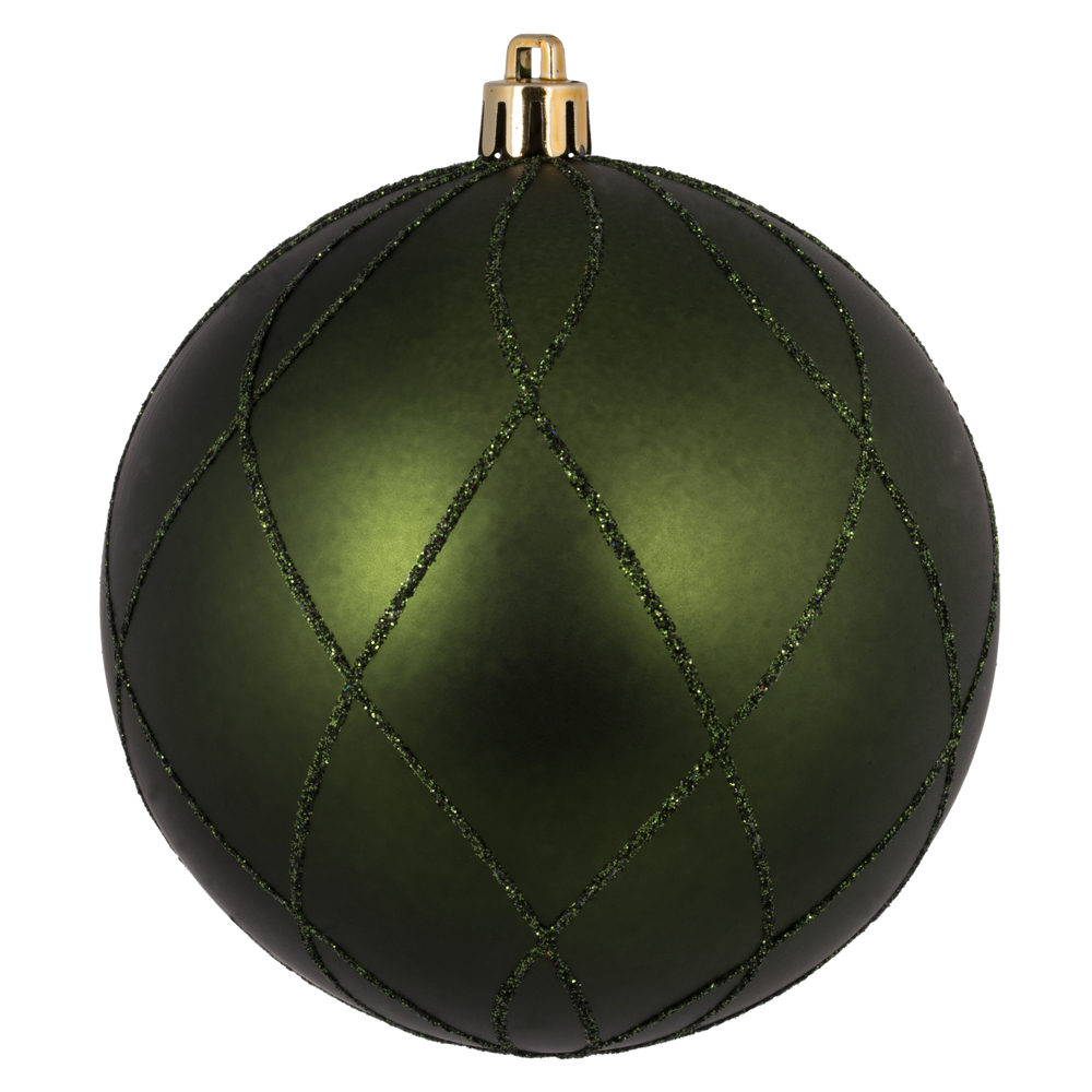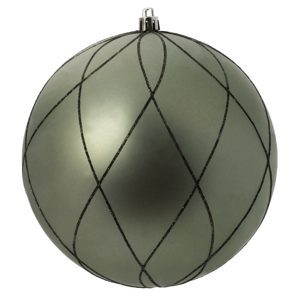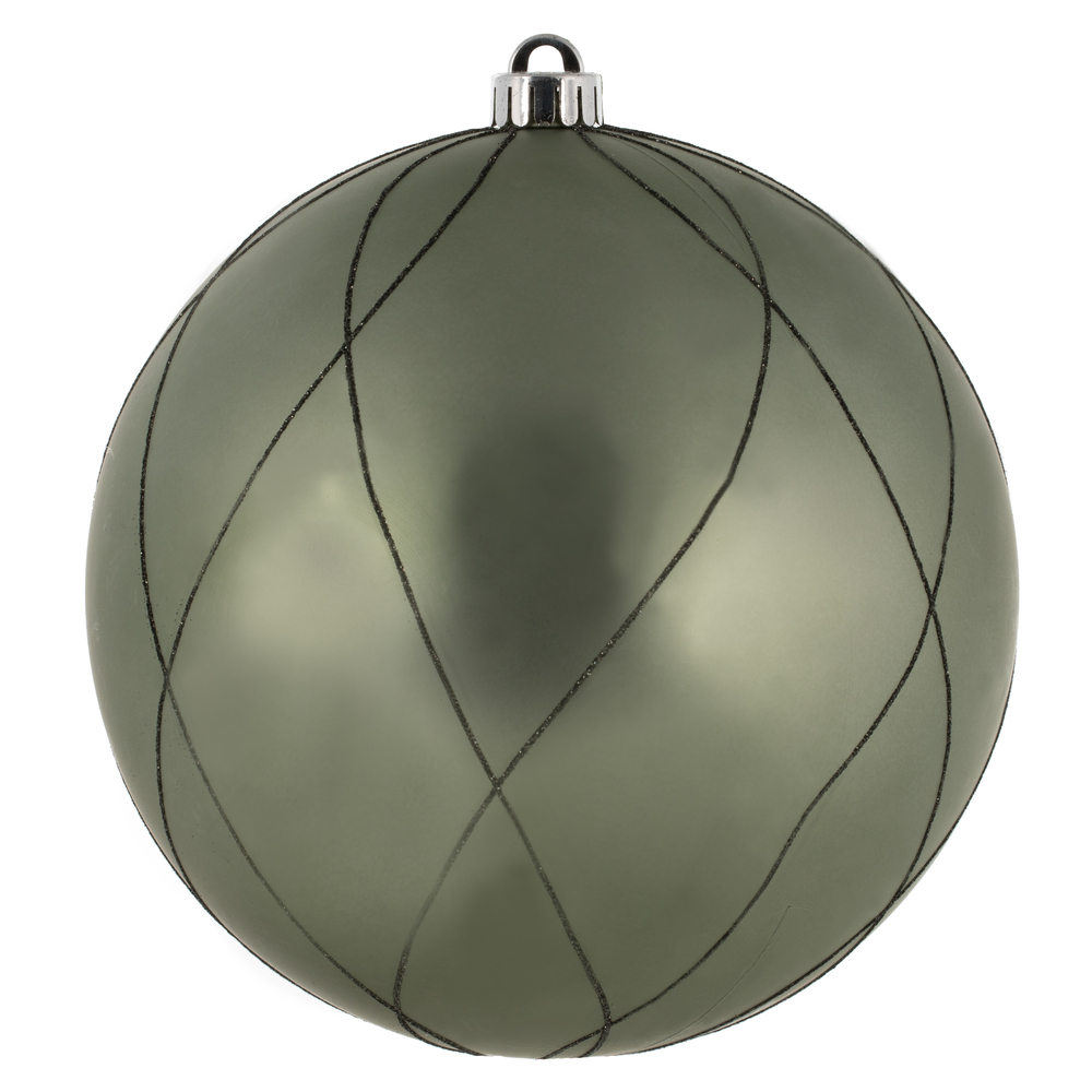 6" Moss Green Matt Glitter Swirl Ball 3/