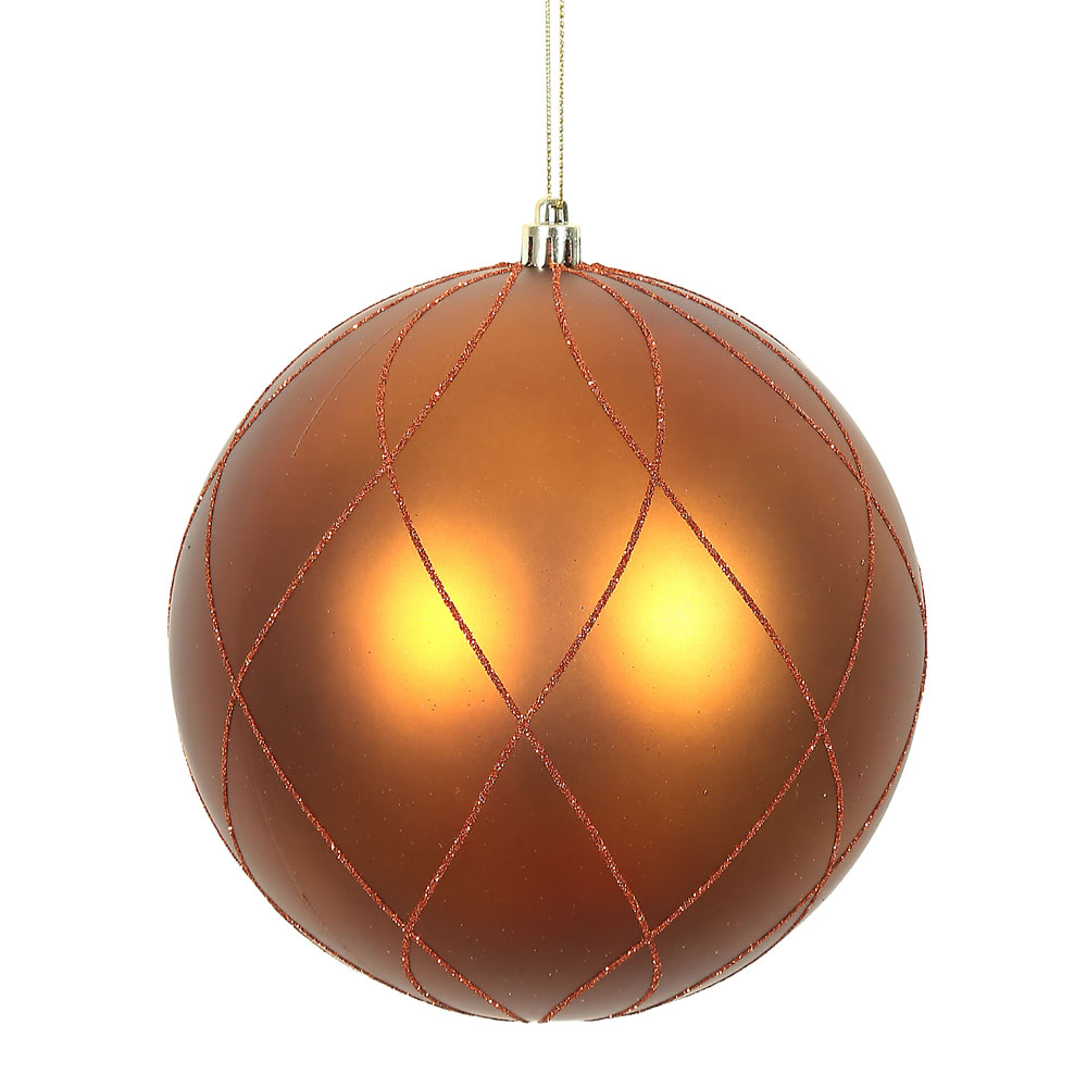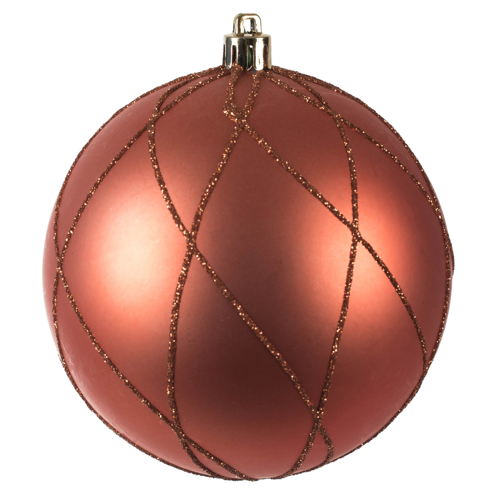 6" Copper Matt Glitter Swirl Ball 3/Bx