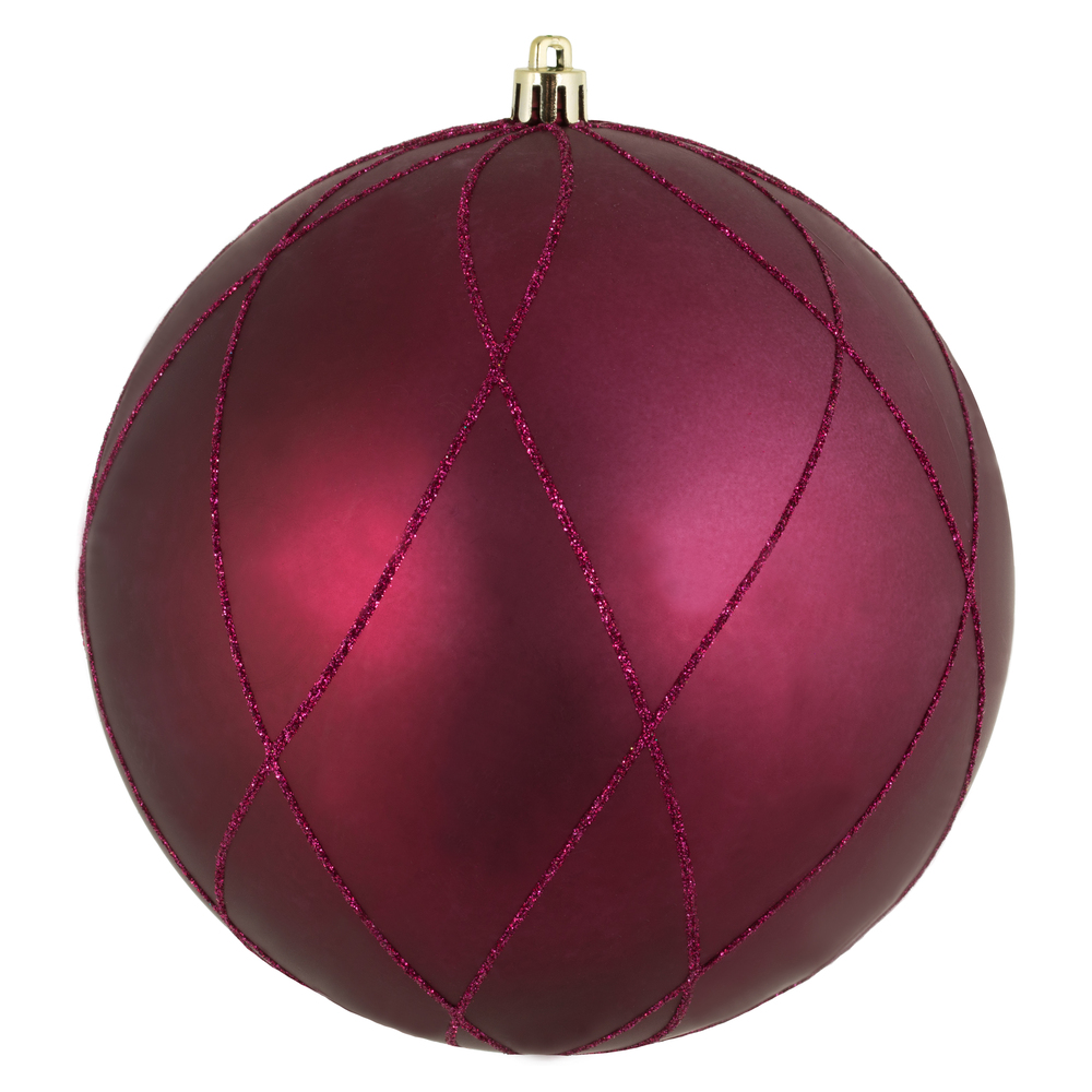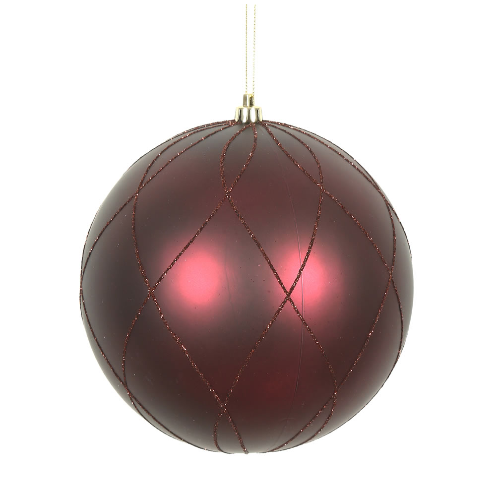 6" Wine Matt Glitter Swirl Ball 3/Bx