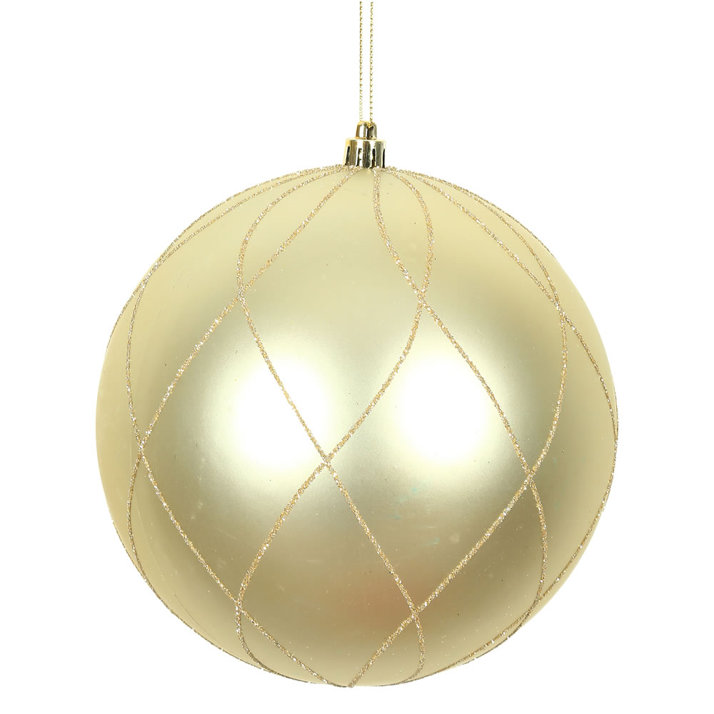 6" Champagne Matt Glitt Swirl Ball 3/Bx