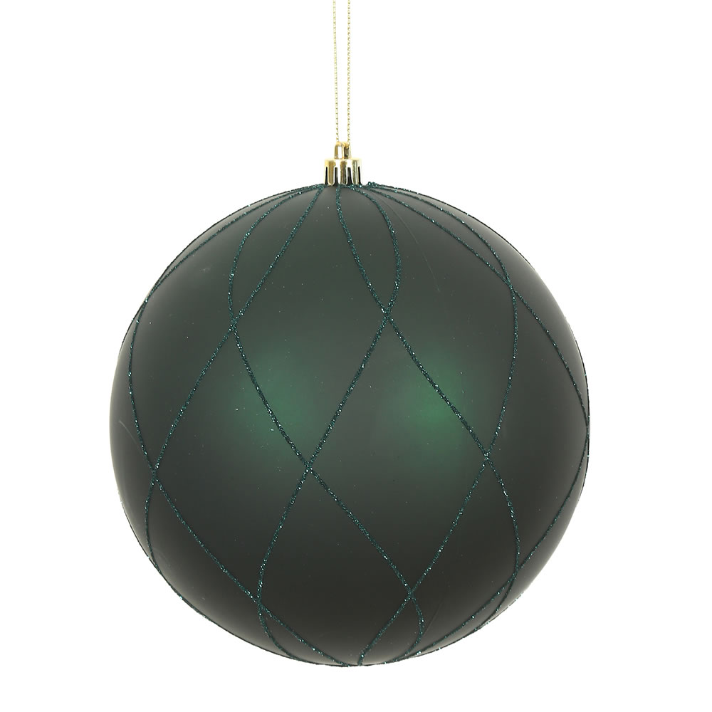 6" Emerald Matt Glitter Swirl Ball 3/Bx