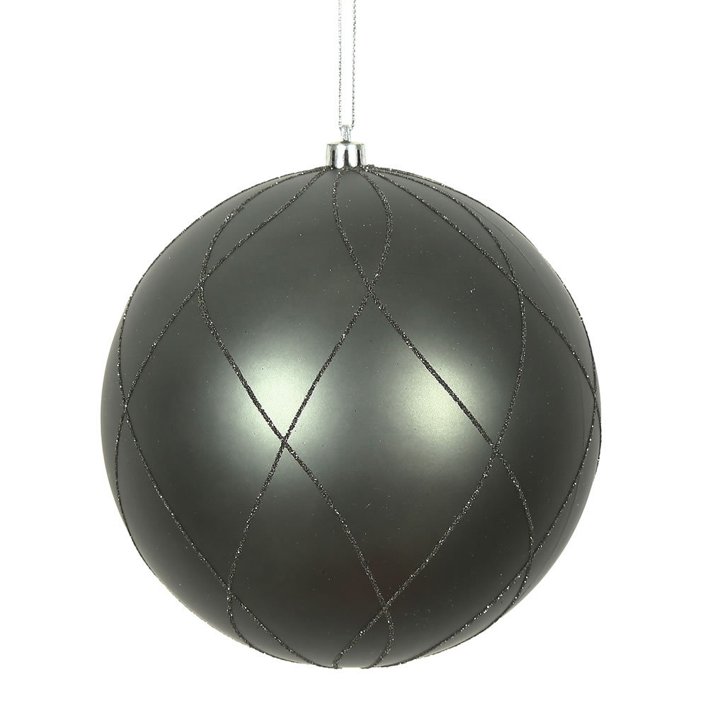 8" Black Matte Glitter Swirl Ball 1/Bx
