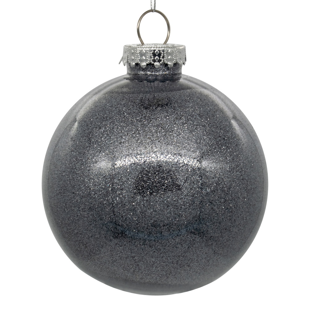 4.75" Gunmetal Glitter Clear Ball 4/bag