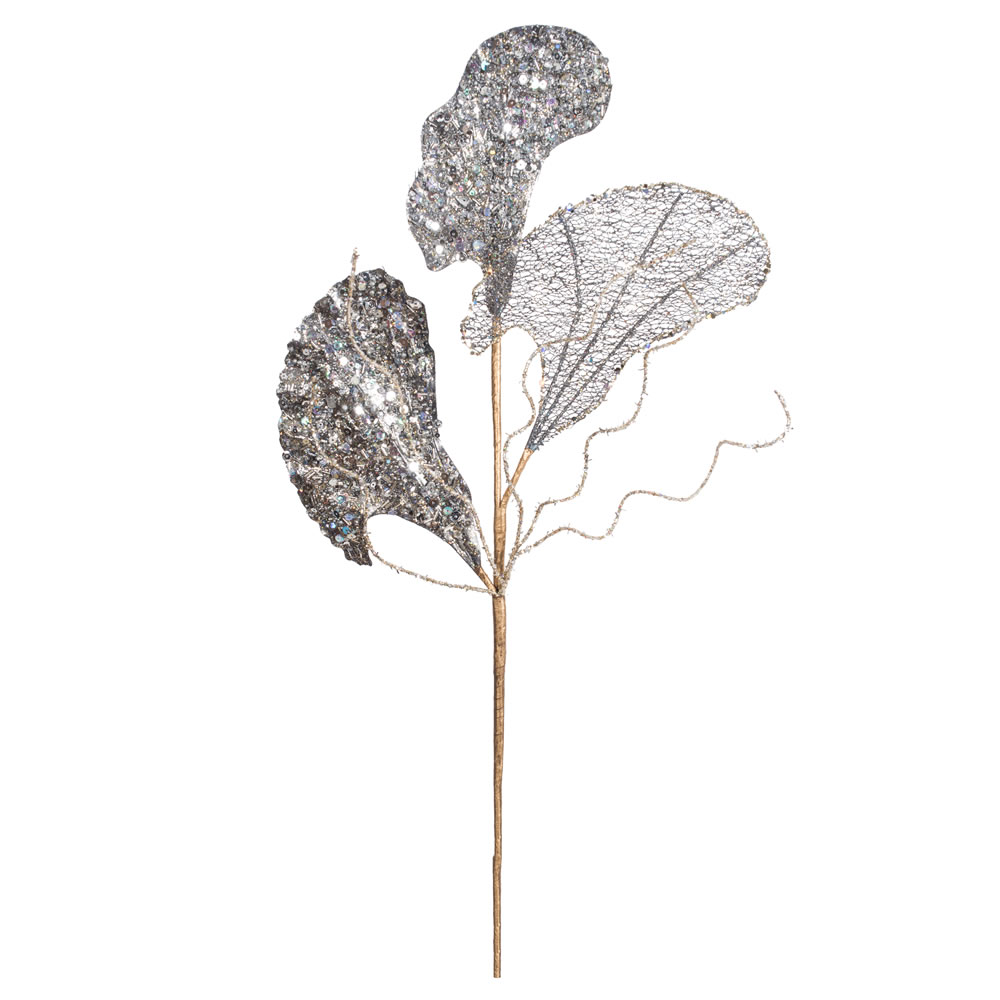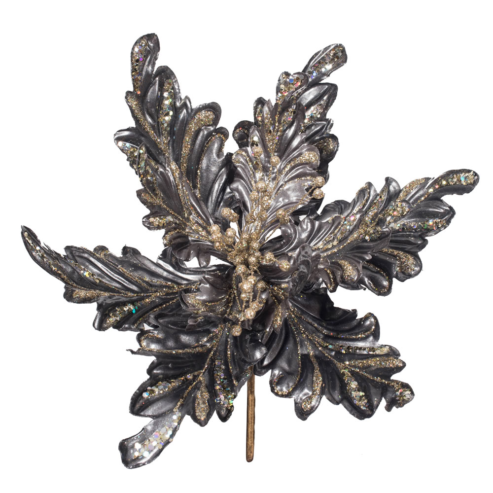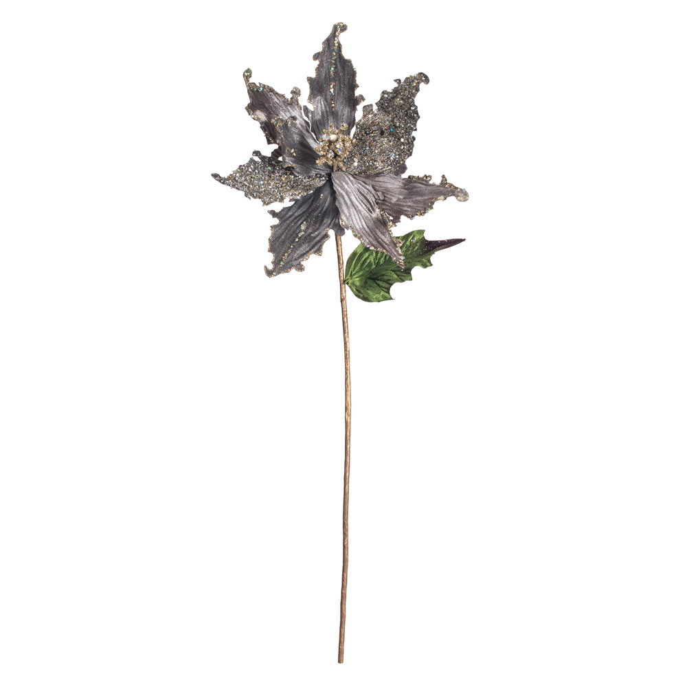 20" Silver Poinsettia 12" Flower 3/Bg
