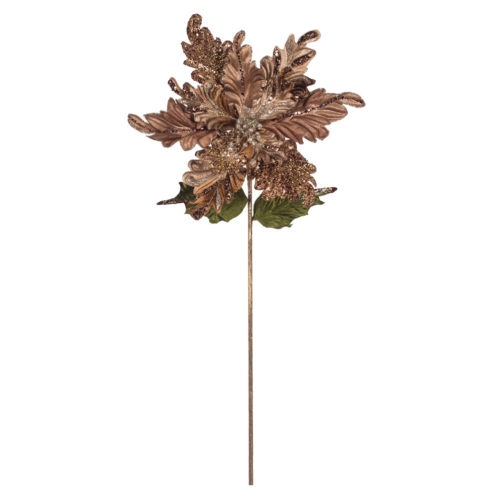 20" Rose Gold Poinsettia 14" Flower 3/Bg
