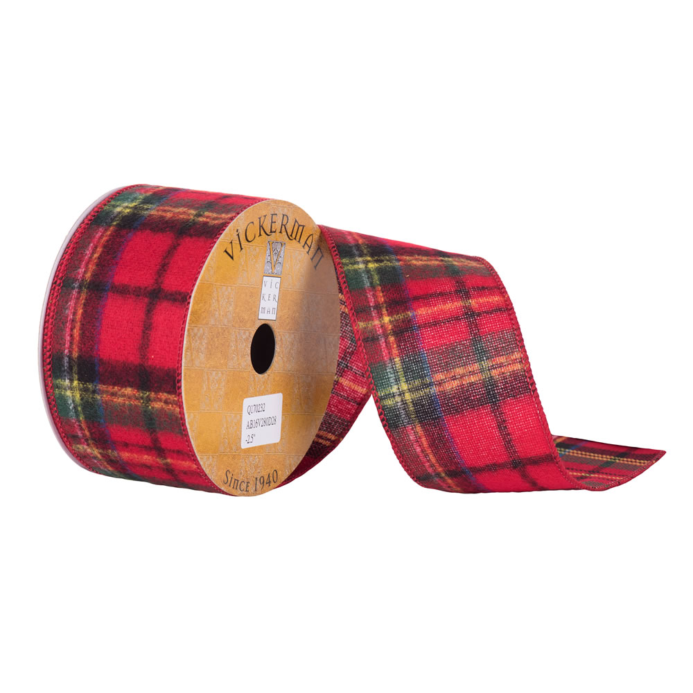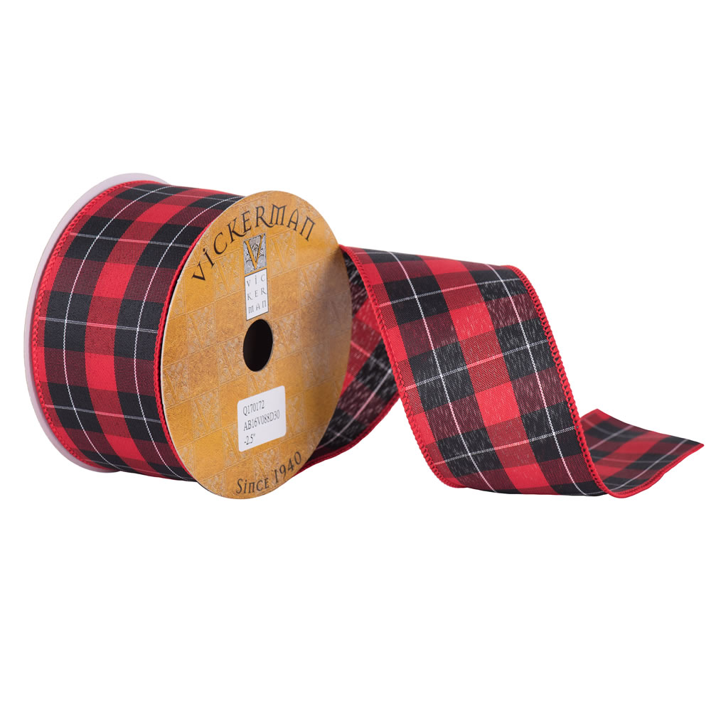 2.5"x10yd Black/Tan Plaid Ribbon