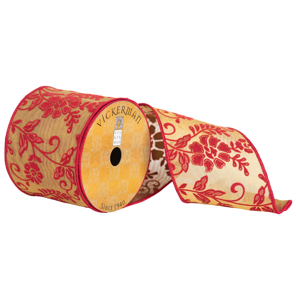 2.5"x10yd Frosted Tan Poinsettia Ribbon
