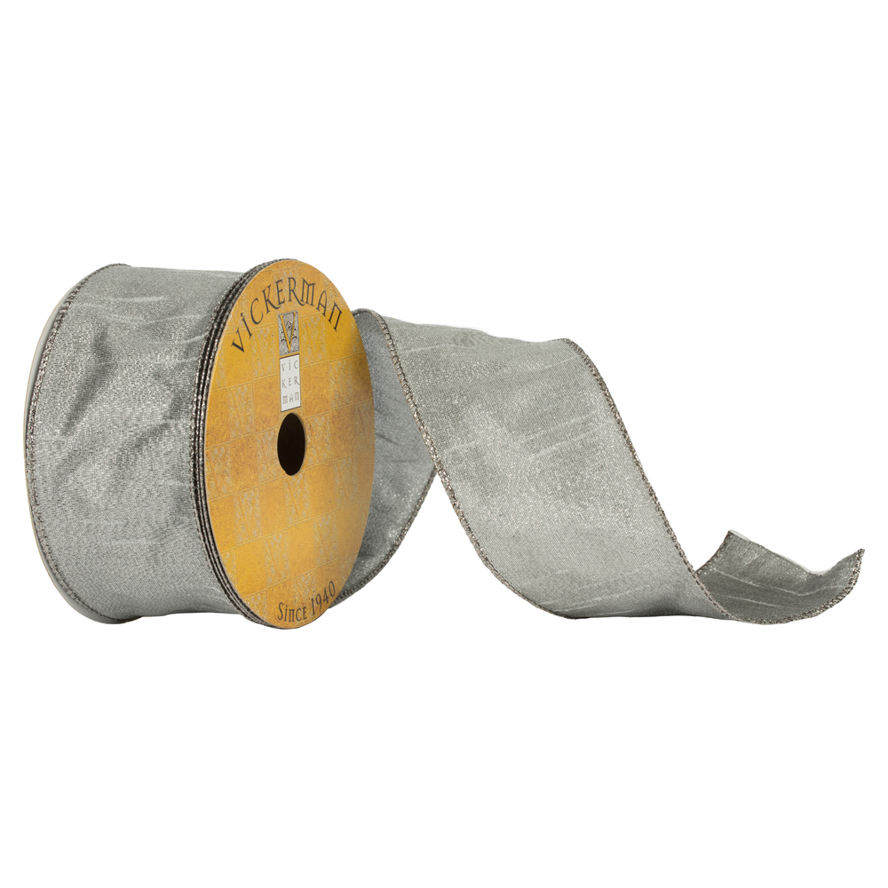 2.5"x10yd Silver Woven Dupion Ribbon