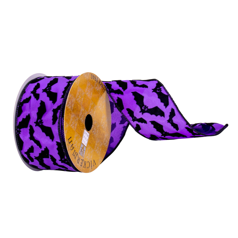 2.5"x10yd White Black Velvet Bats Ribbon