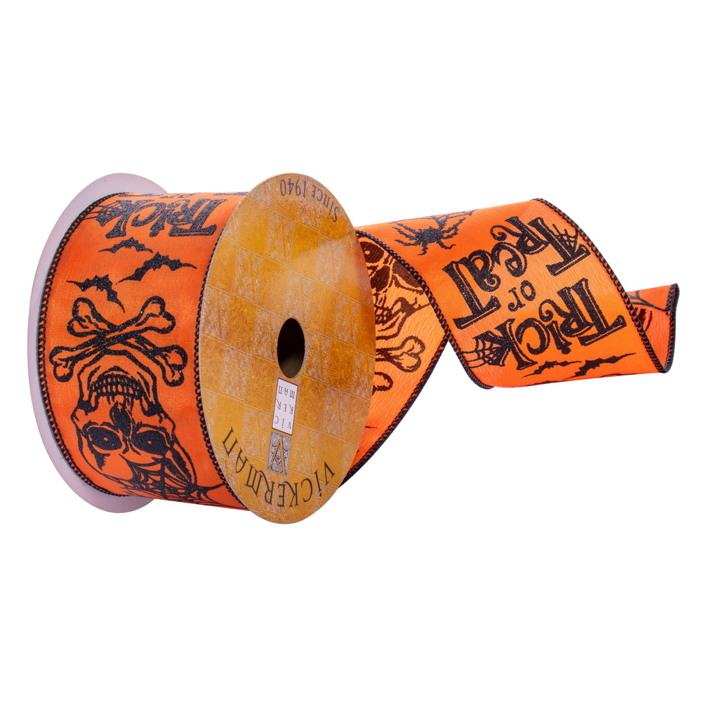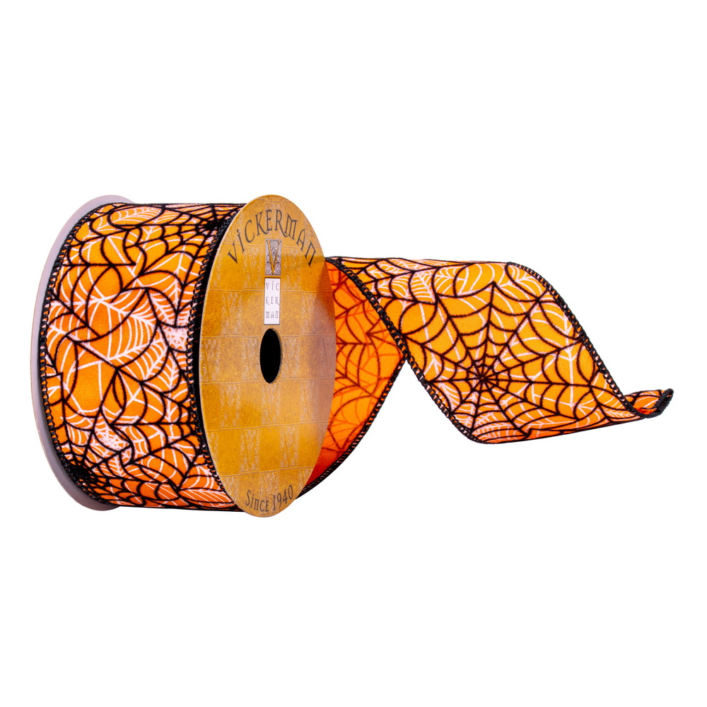 2.5"x10yd Orange Skull Spiderweb Ribbon
