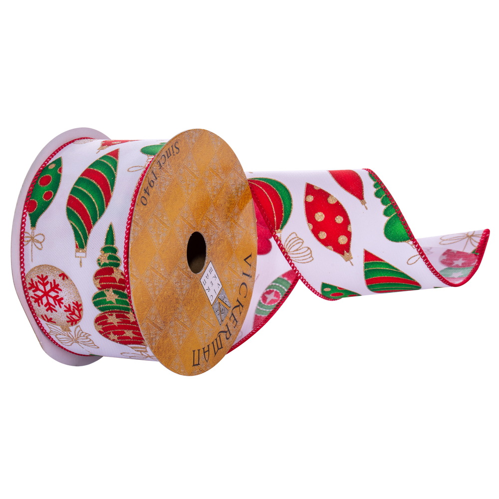 4"x10yd White/Red/Green Plaid Ribbon