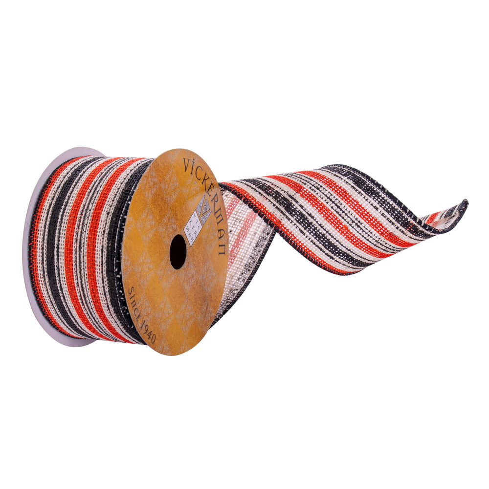 2.5"x10yd Orange Black Stripe Ribbon