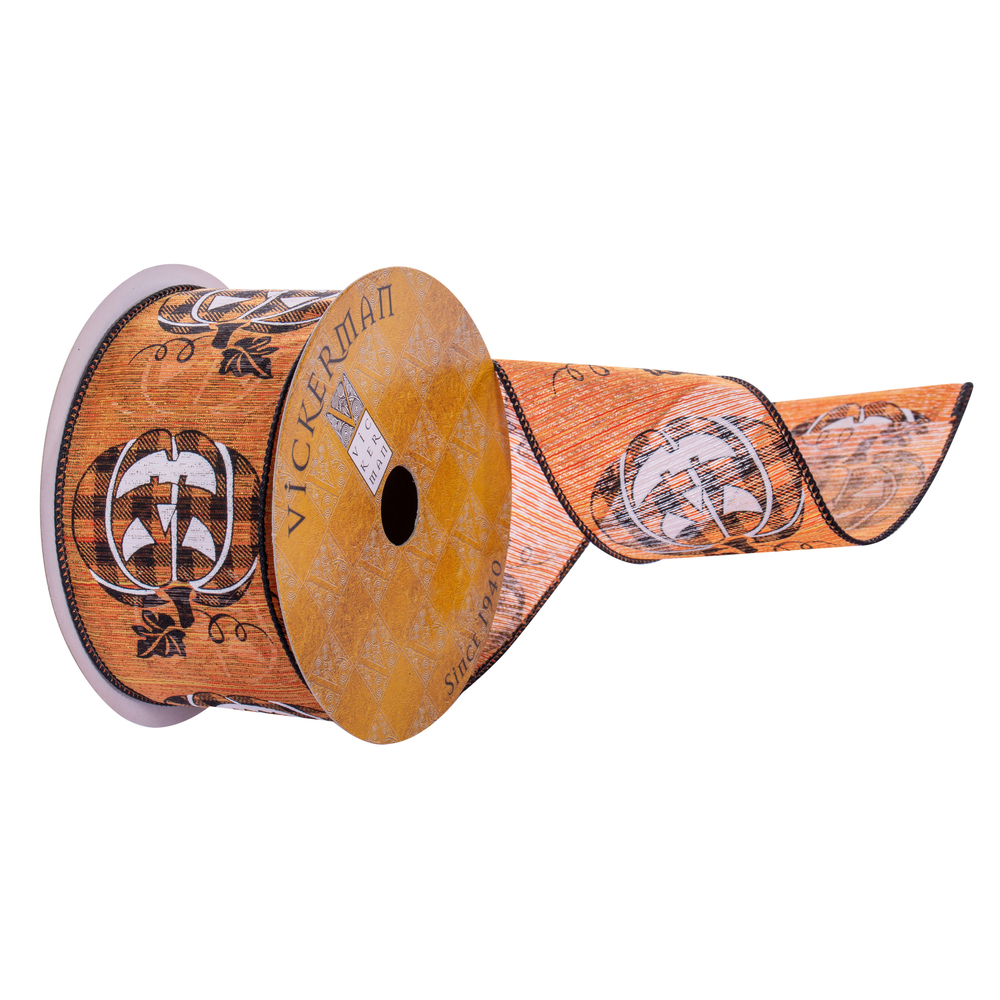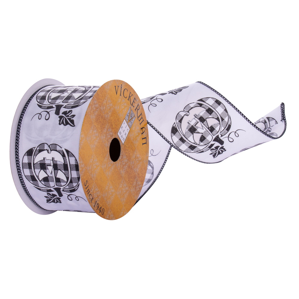 2.5"x10yd White Plaid Pumpkin Ribbon