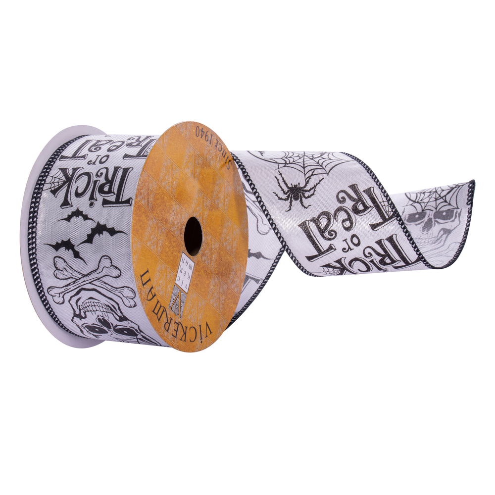 2.5"x10yd White Trick Or Treat Ribbon