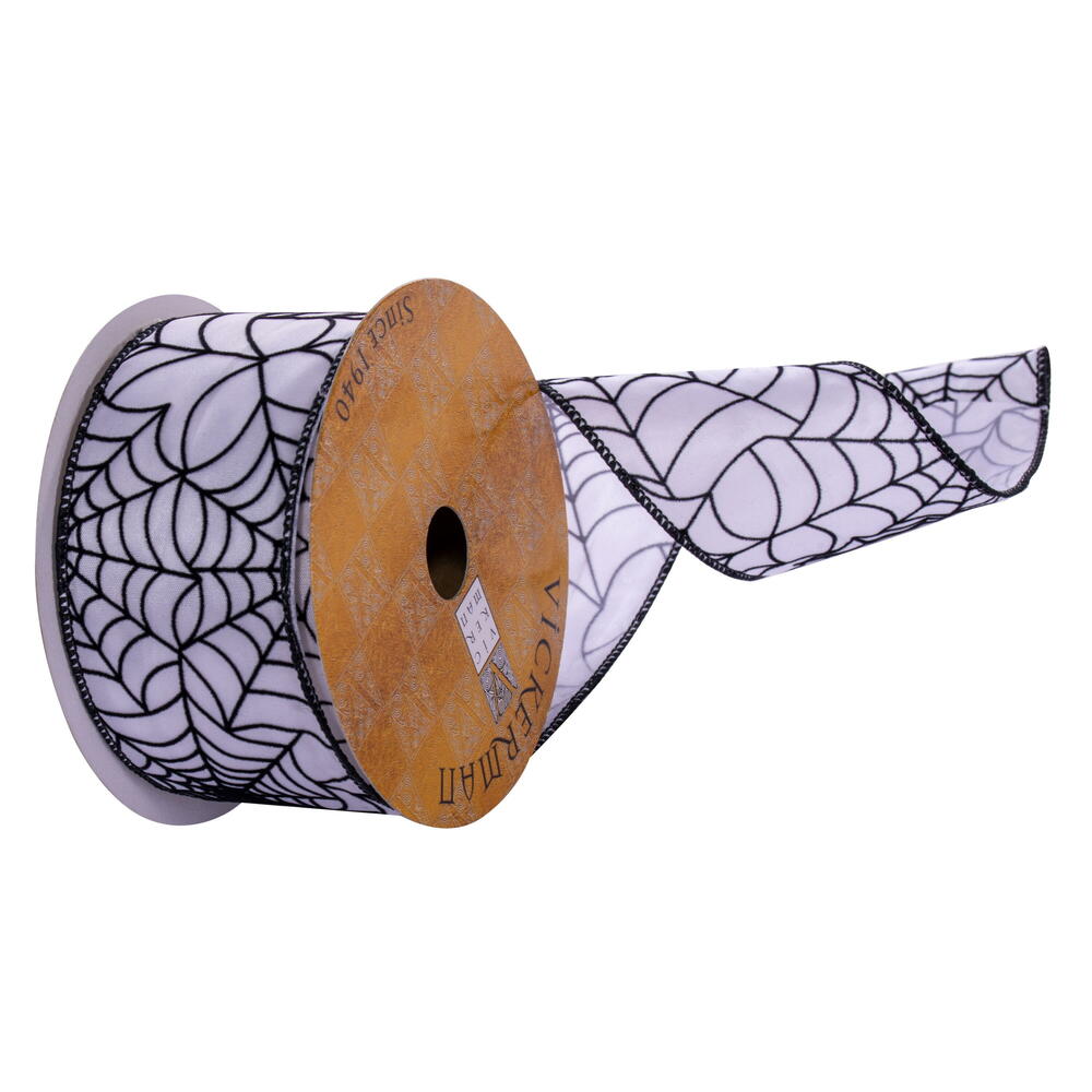 2.5"x10yd White Black Spiderweb Ribbon