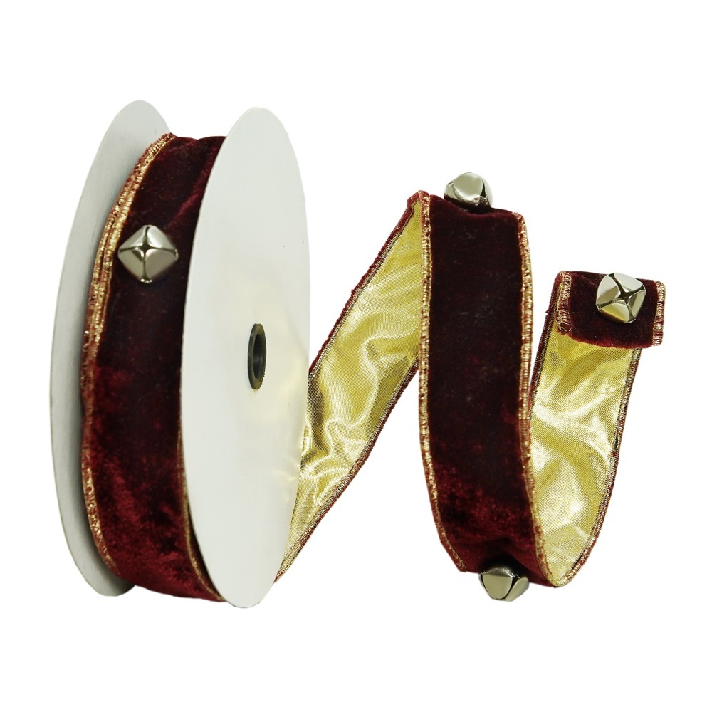 1.5"x10yd Wine Jingle Bells Ribbon
