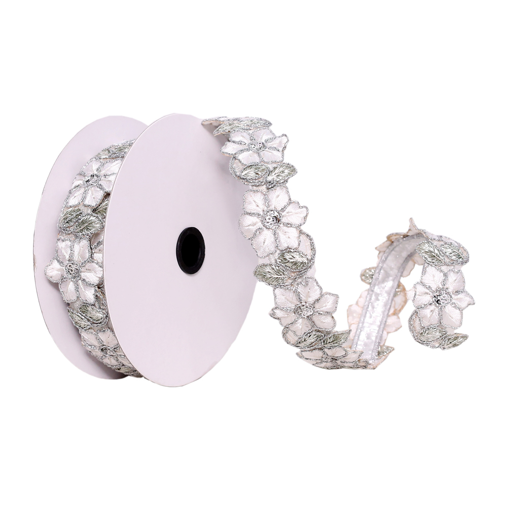 1.5"x5yd White/Silver Flower Ribbon