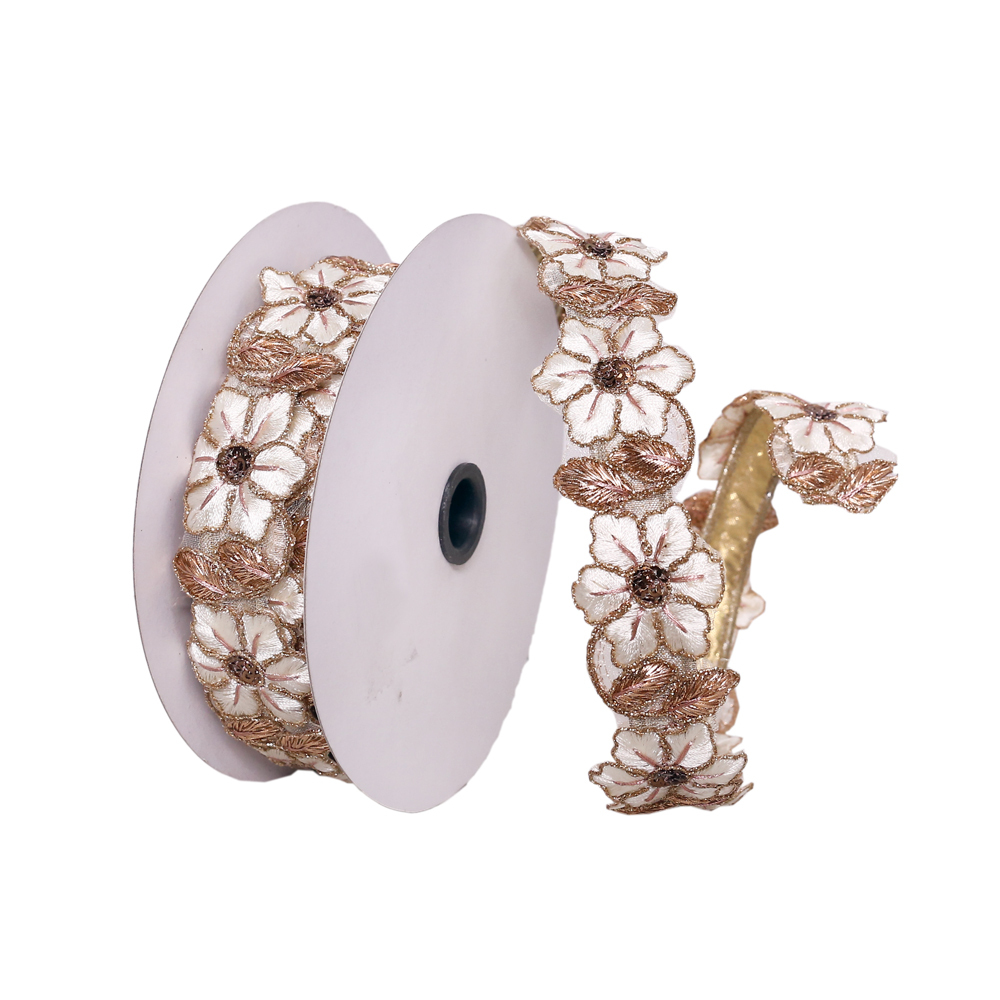 1.5"x5yd Cream/Champagne Flower Ribbon