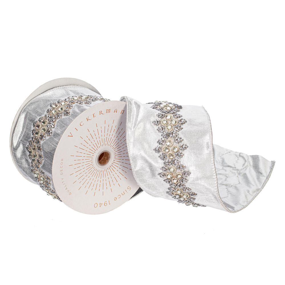 4"x5yd Silver with Jewels Ribbon