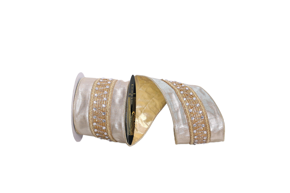 4"x5yd Gold Pearl/Jewels Ribbon