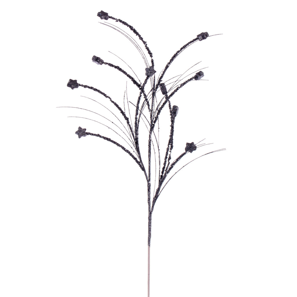 37" Black Wavy Twig Glitter Spray 6/Bg