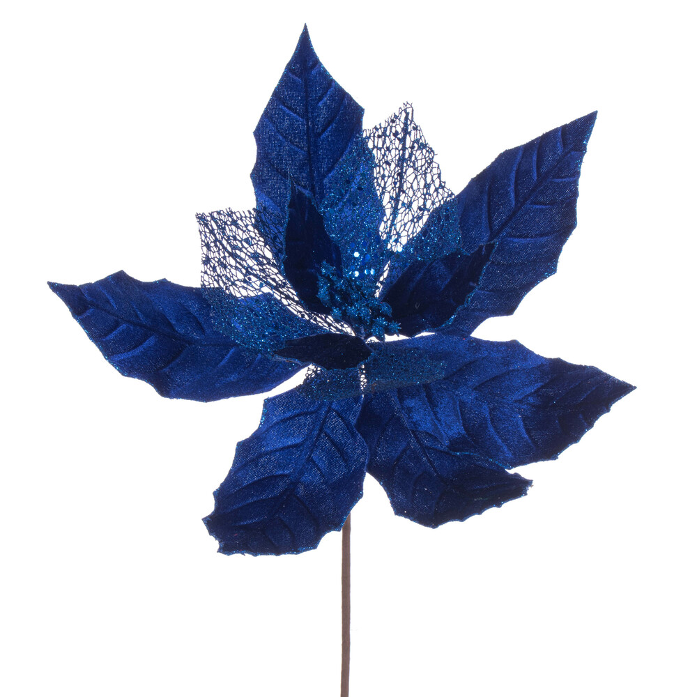 11" Mdnt Blue Glitr Mesh Poinsettia 6/Bg