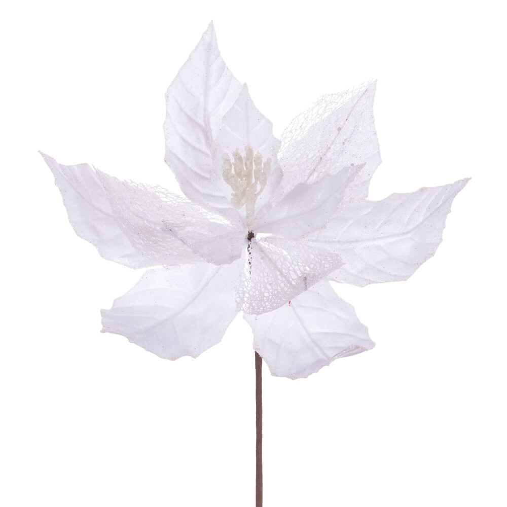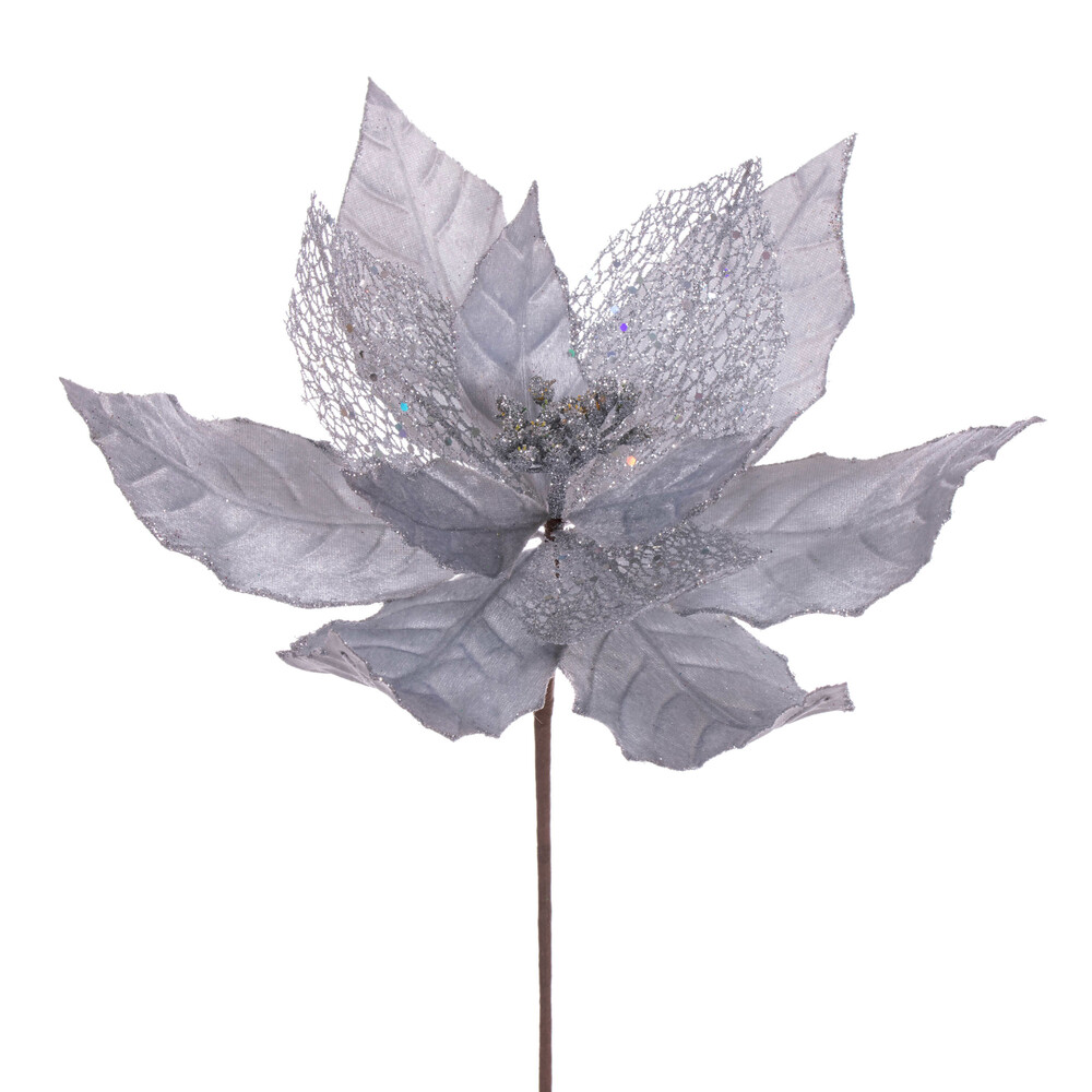 11" Silver Glitter Mesh Poinsettia 6/Bg