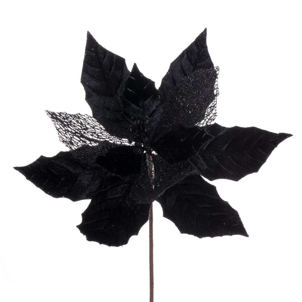 11" Black Glitter Mesh Poinsettia 6/Bg