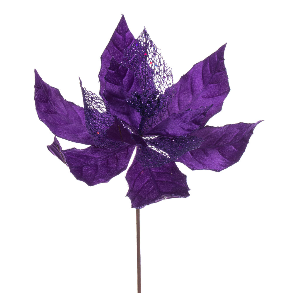 11" Plum Glitter Mesh Poinsettia 6/Bag