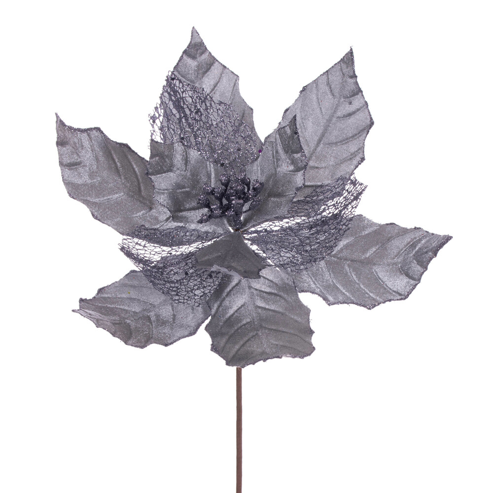 11" Pewter Glitter Mesh Poinsettia 6/Bg
