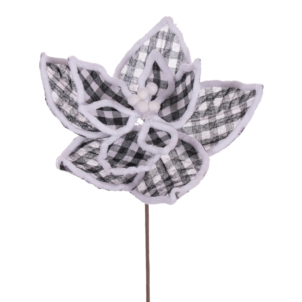 11" Blk/Wht Plaid Wht Line Flower 6/Bg