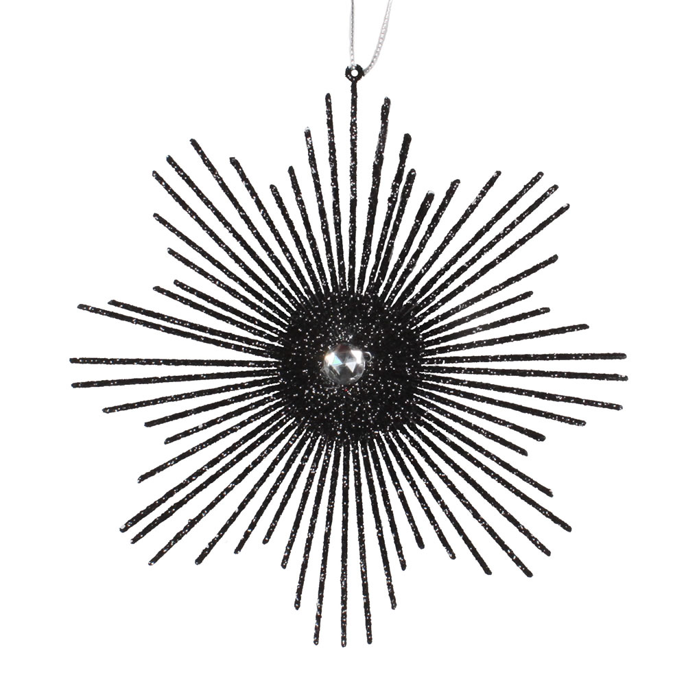 6.5" Black Glitt Snowflake Burst 6/Bag