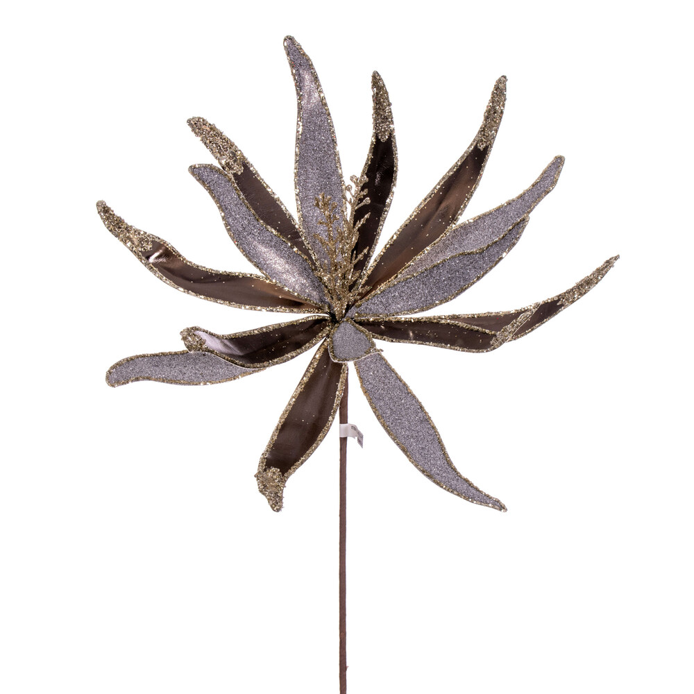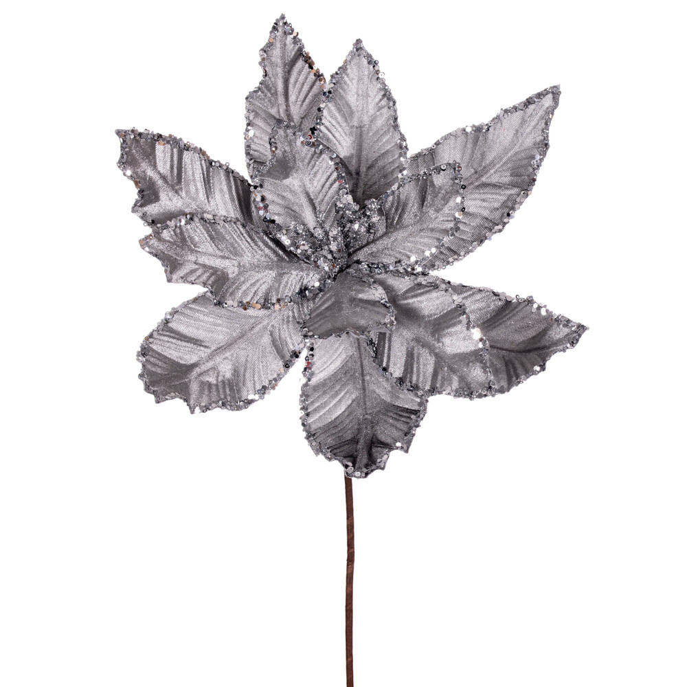 22" Pewter Velvet Glitr Poinsettia 6/Bg