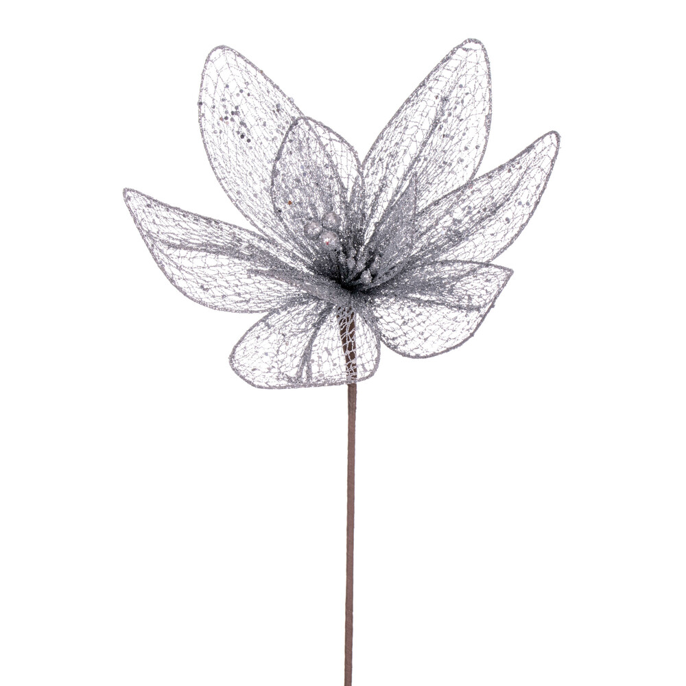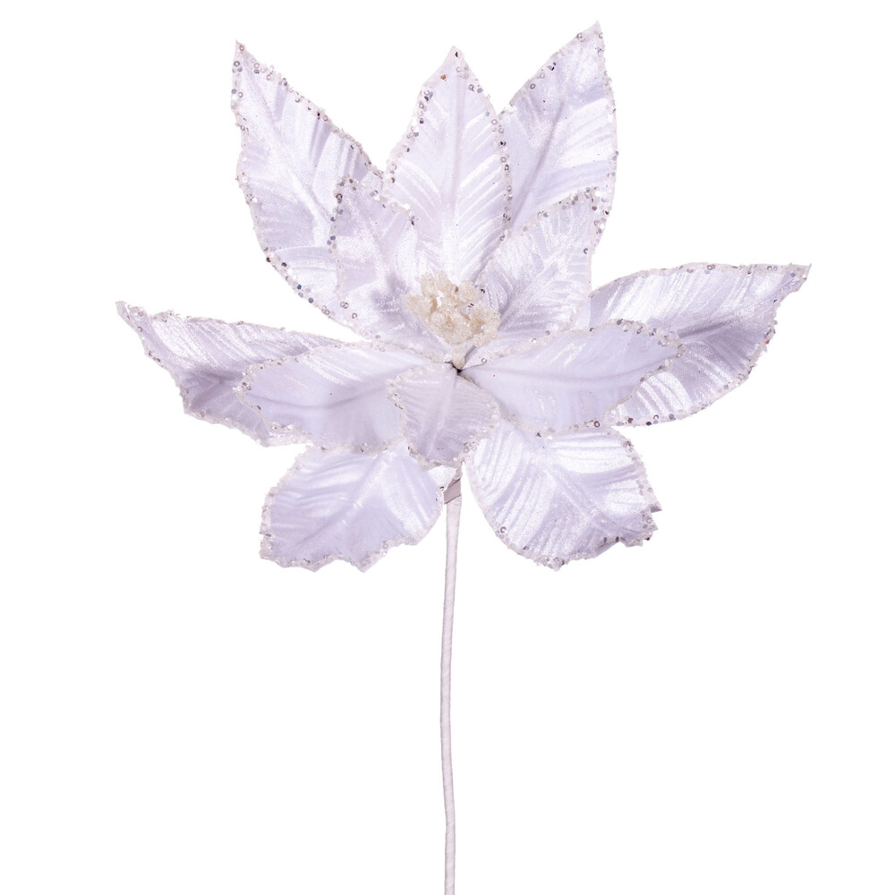 22" Silver Velvet Glitr Poinsettia 6/Bg