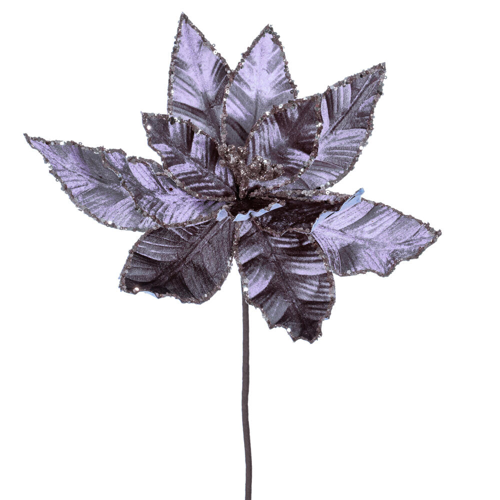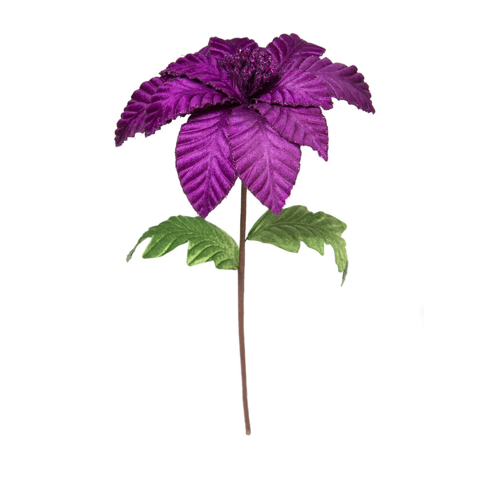 22" Purple Velvet Glitr Poinsettia 6/Bg