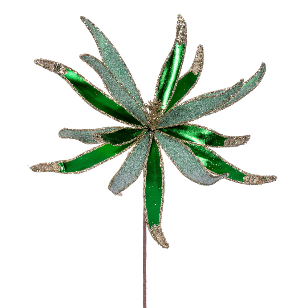 22" Green Velvet Sheen Poinsettia 4/Bag