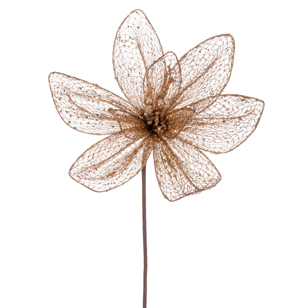 22" Rose Gold Velv Glit Poinsettia 6/Bg