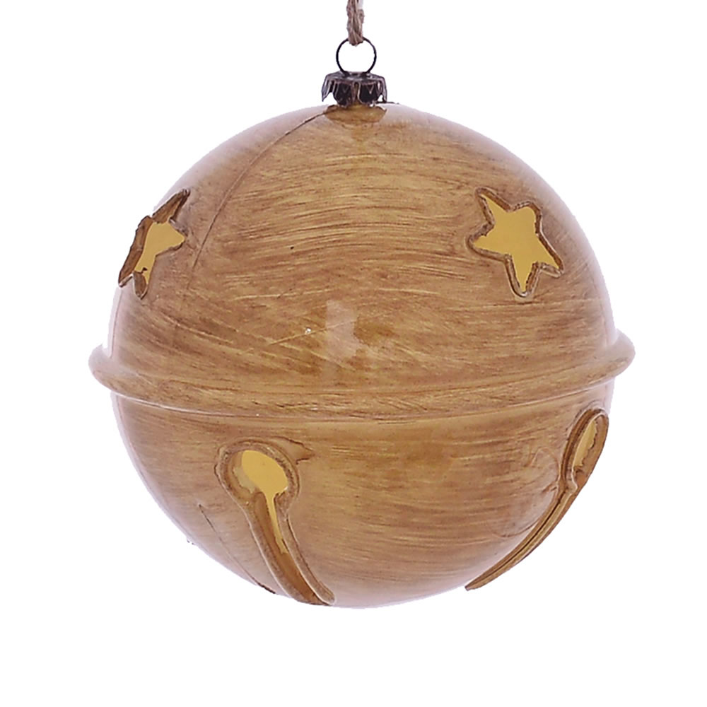 4.75" Tan Wood Grain Bell Orn 4/Bag