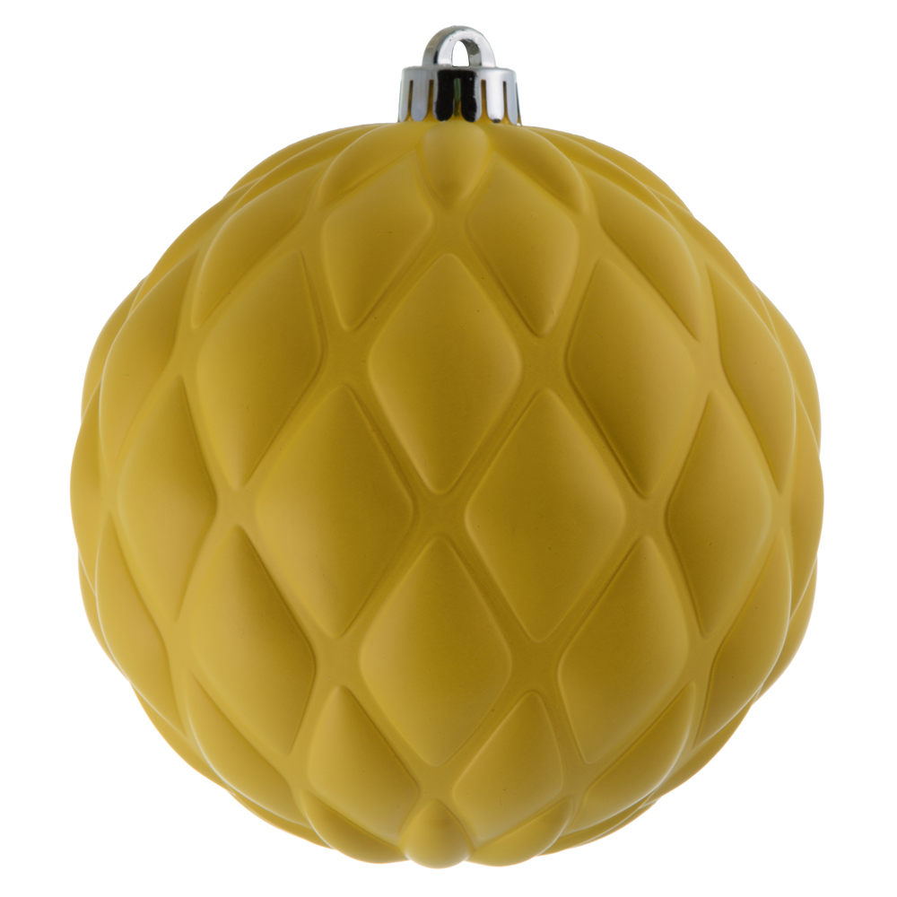 6" Yellow Matte Round Pine Cone 4/Bg