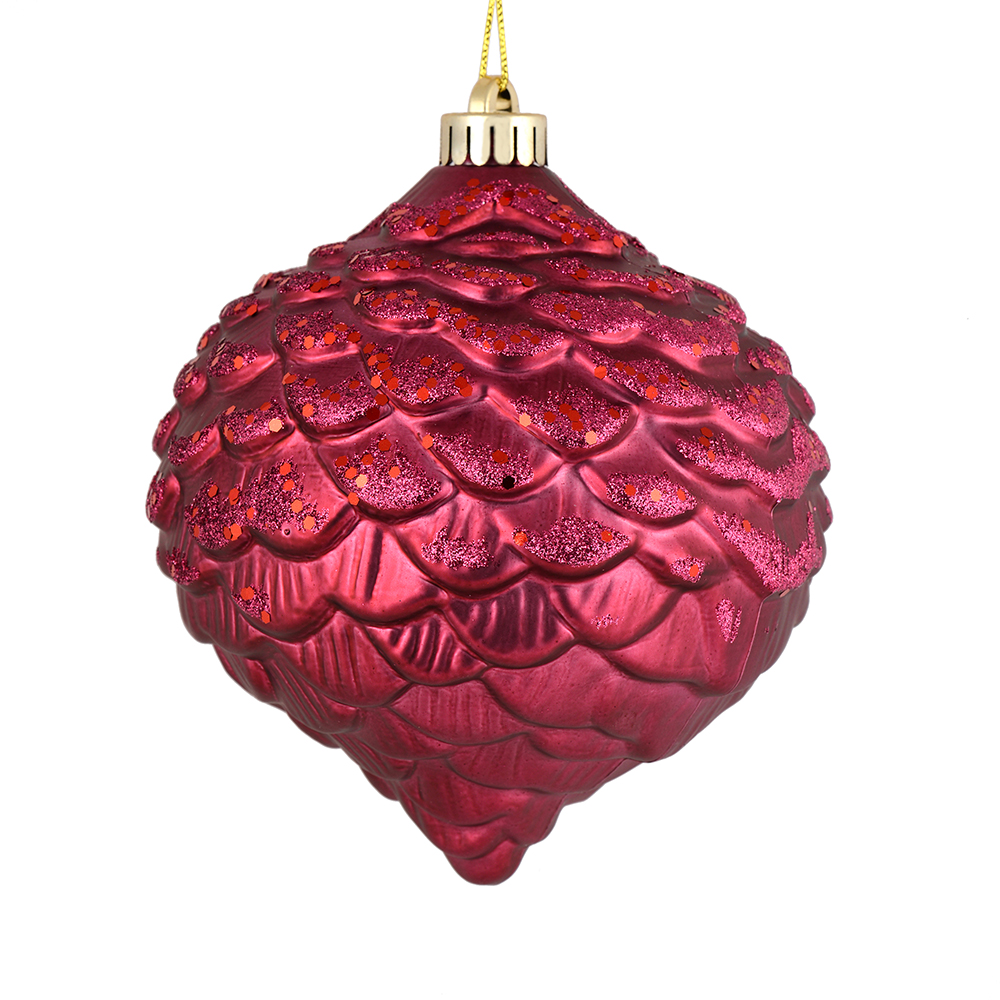 6" Burgundy Matte Round Pine Cone 4/Bg