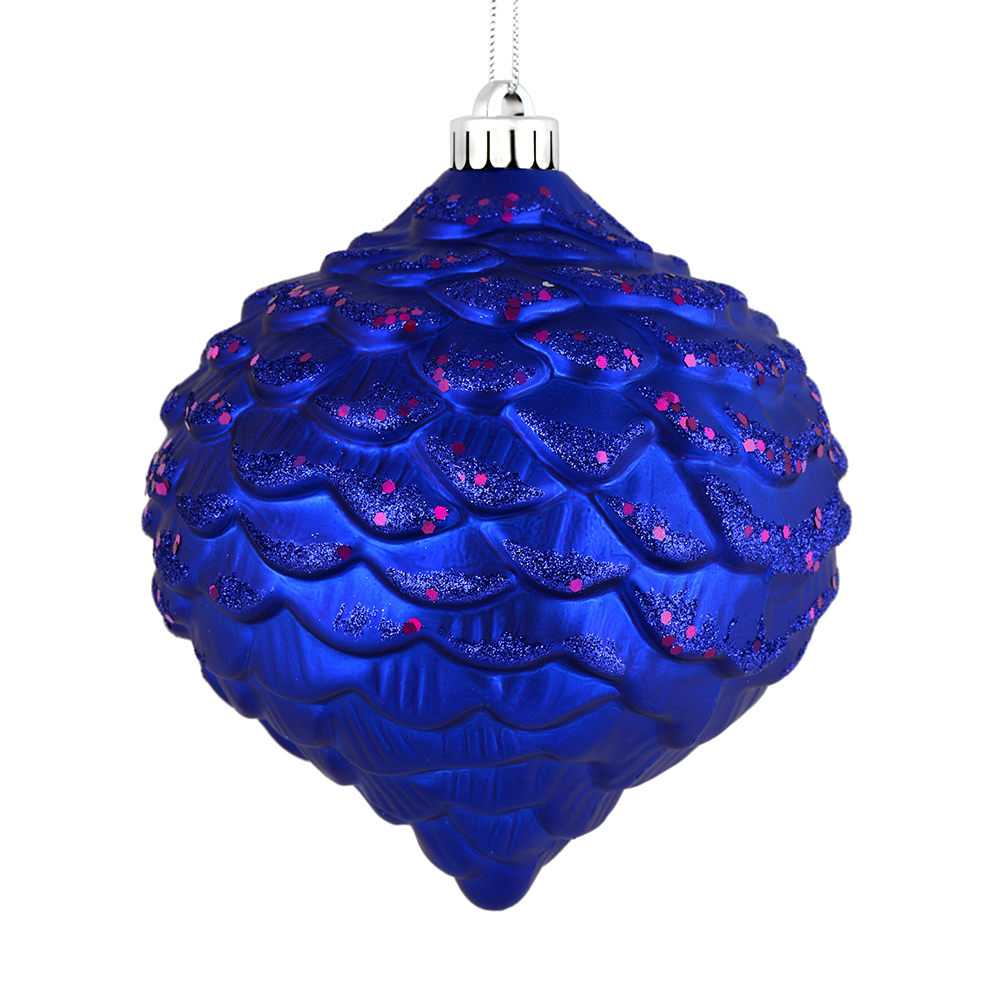 7" Cobalt Blue Matte Glitt Pinecone 4/Bg