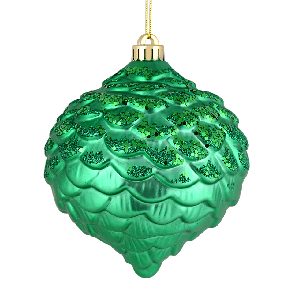 7" Emerald Matte Glitter Pinecone 4/Bag