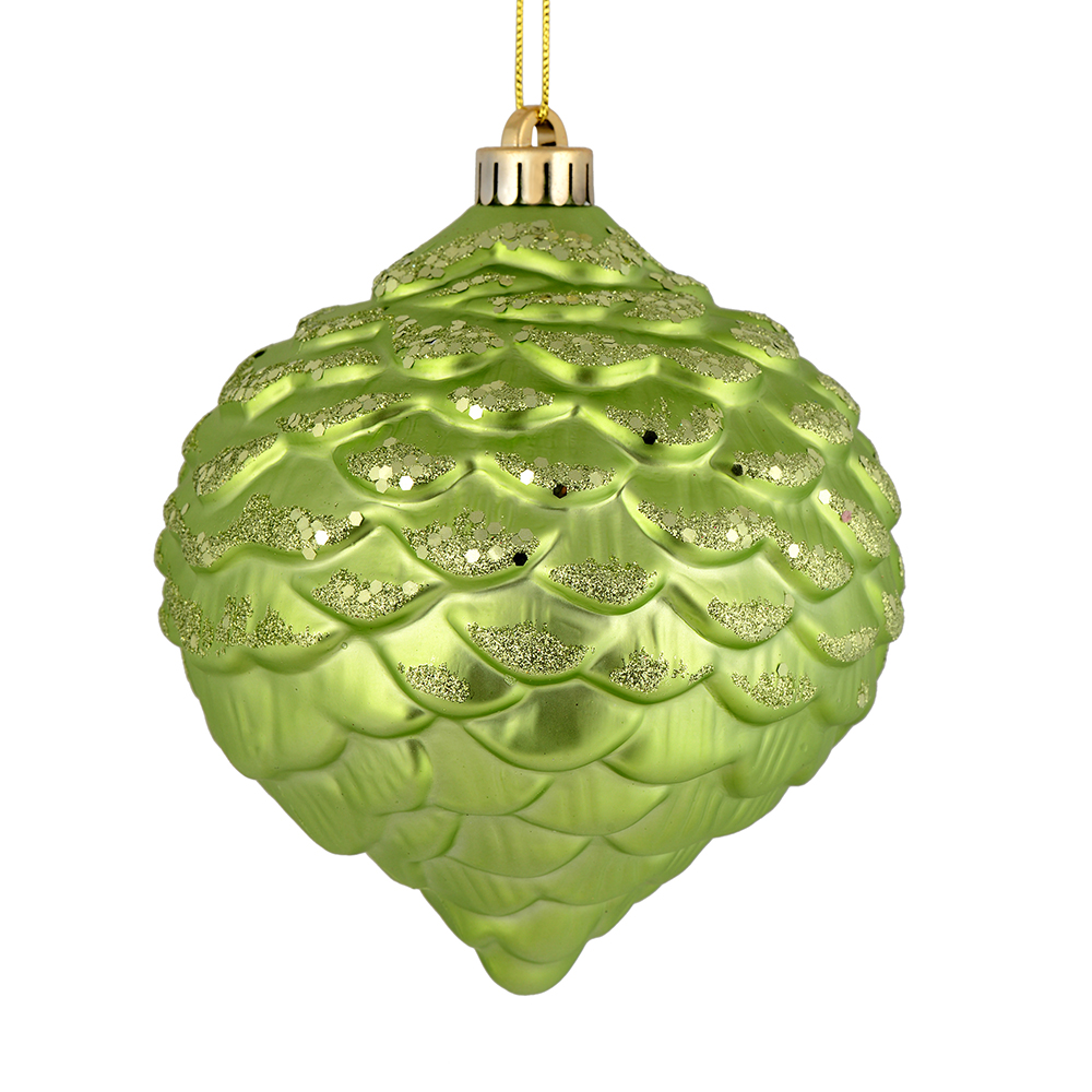 7" Lime Matte Glitter Pinecone 4/Bag